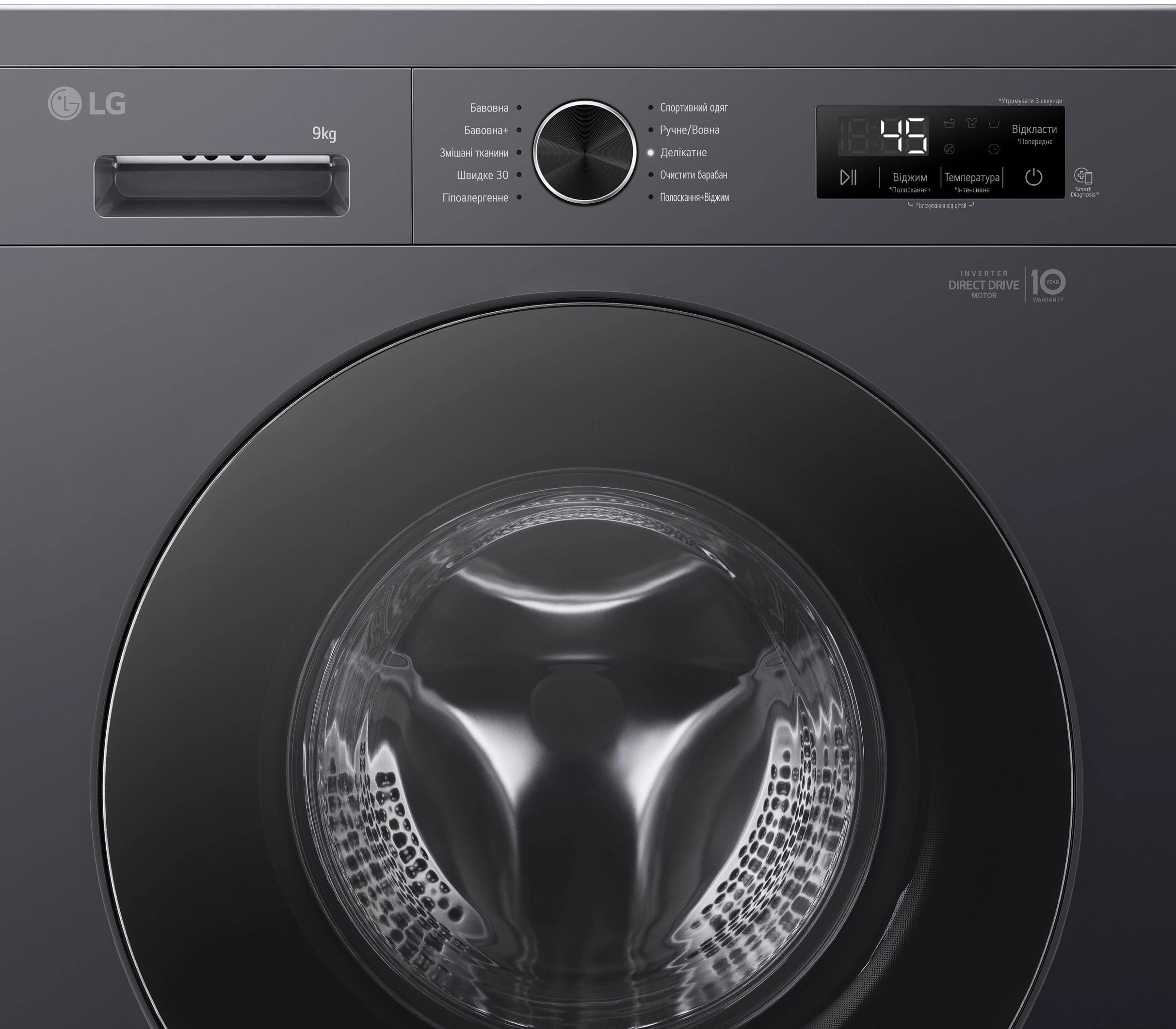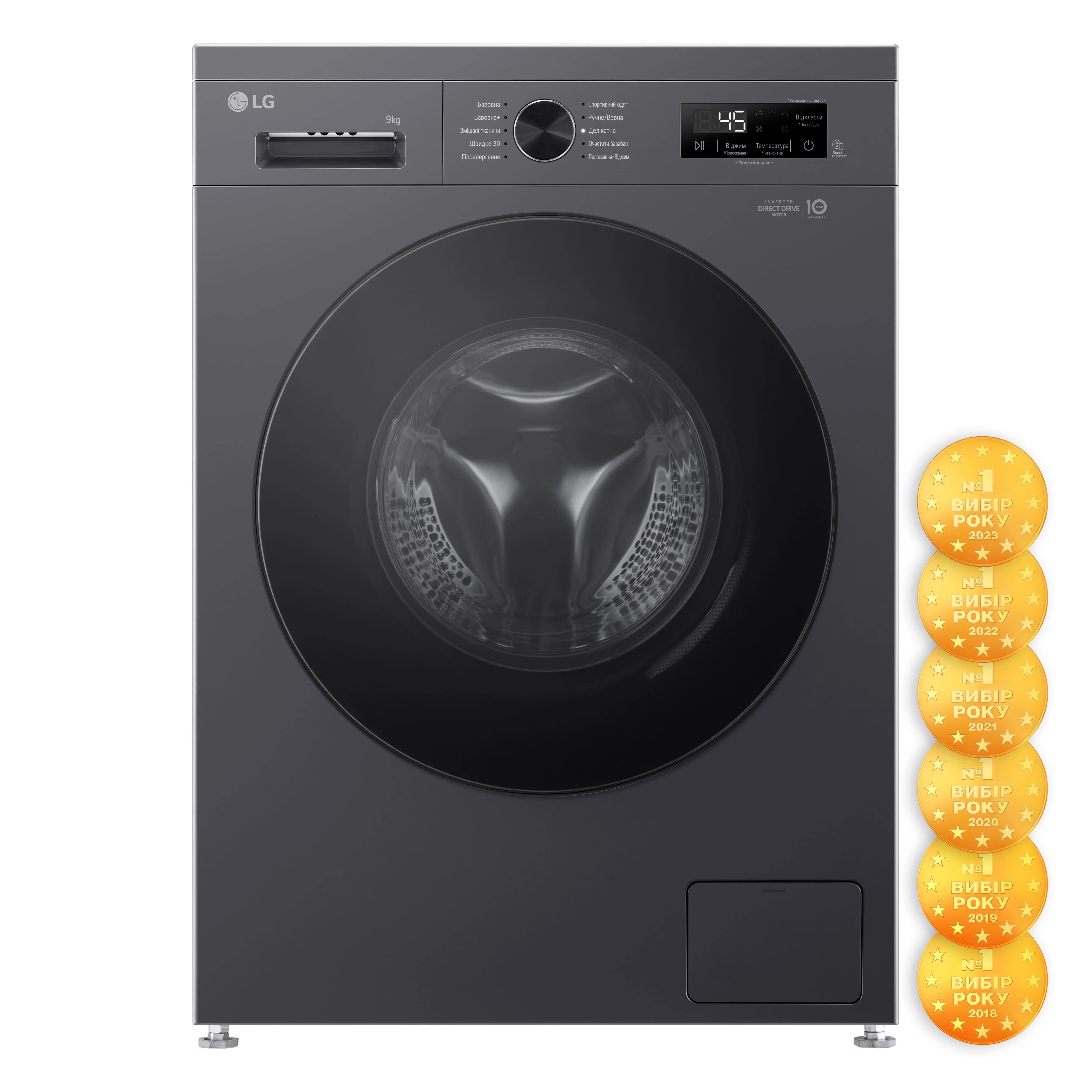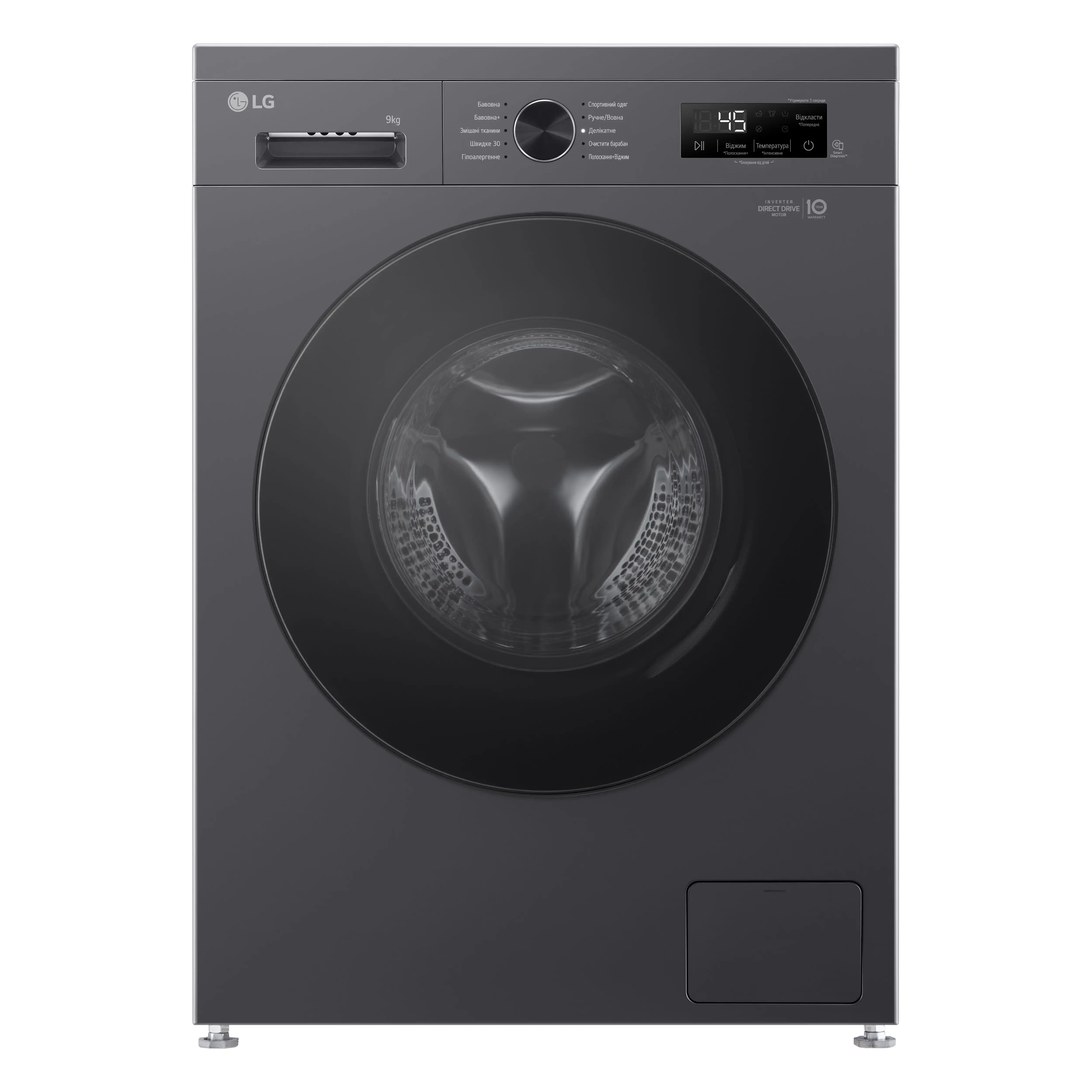 Пральна машина LG фронтальна, 9кг, 1200, A+++, 55см, дисплей, пара, інвертор, чорний