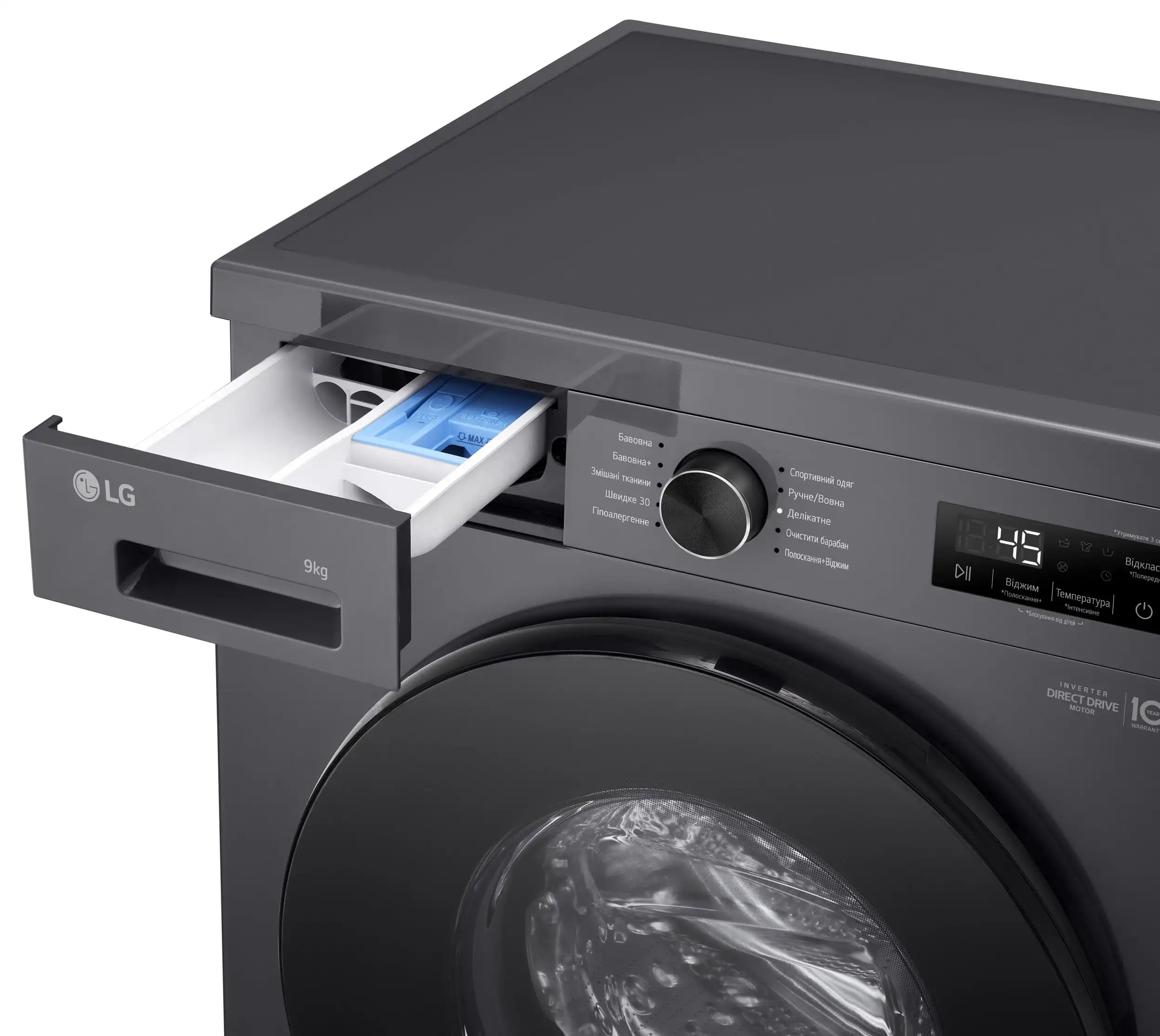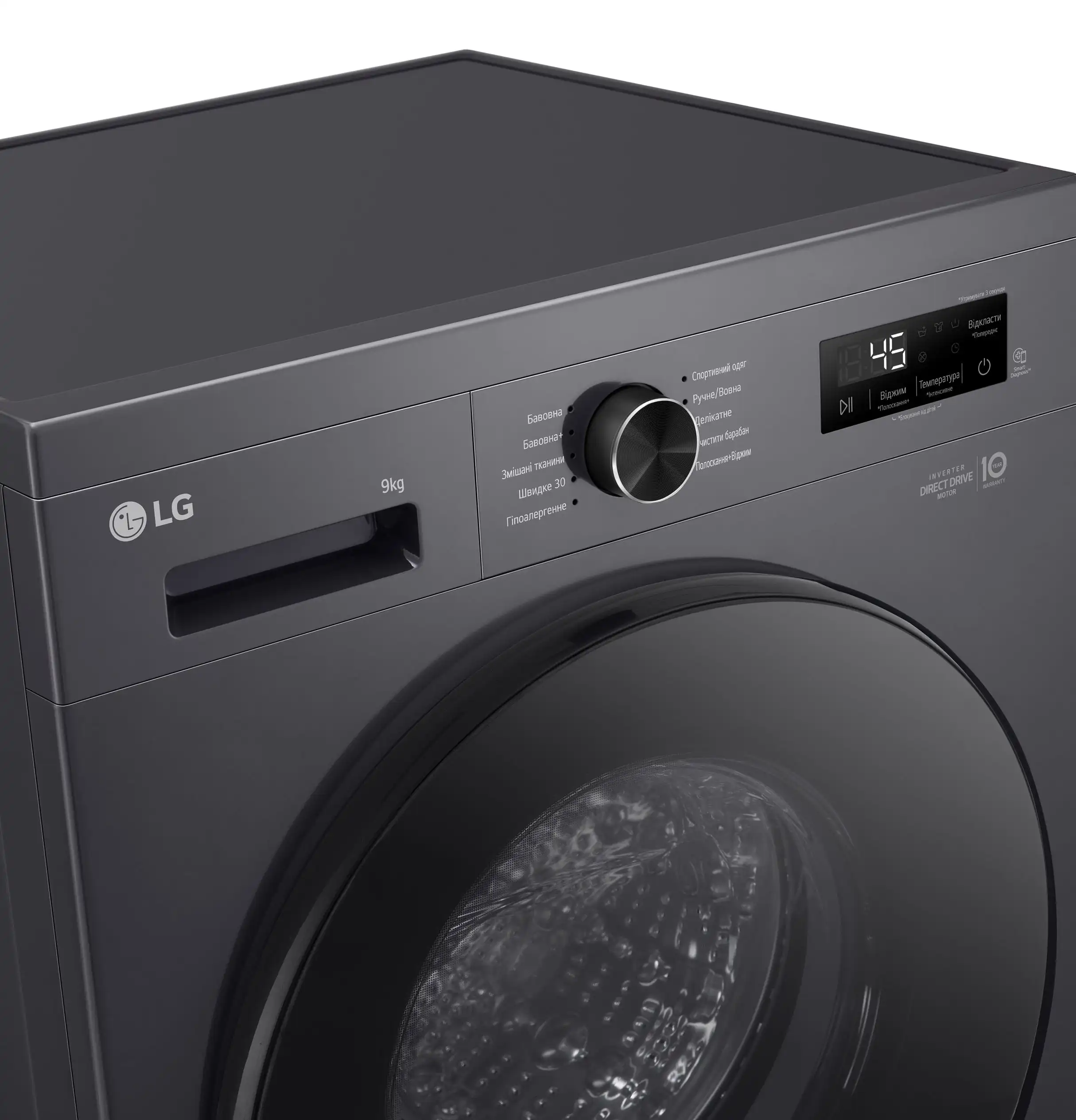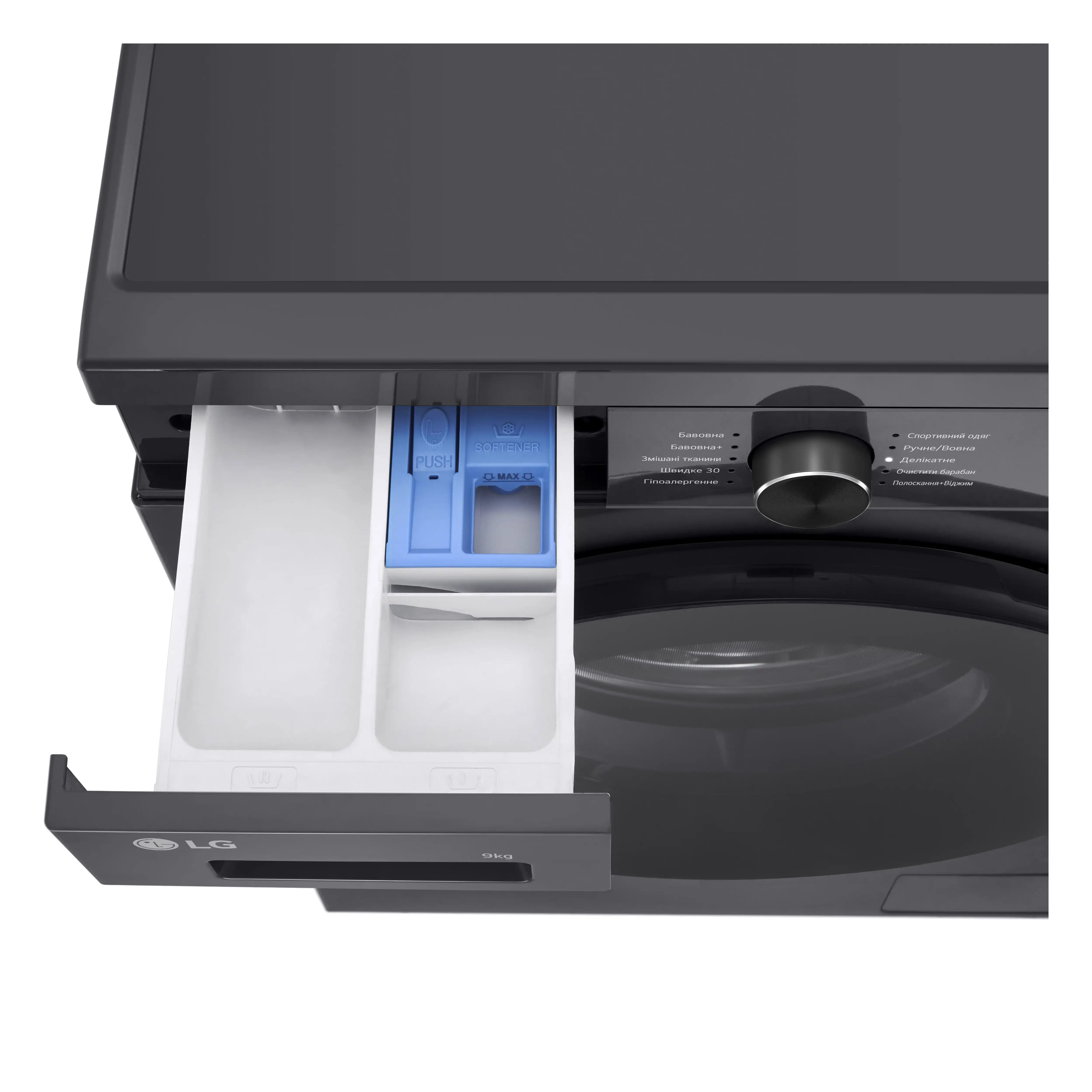 Пральна машина LG фронтальна, 9кг, 1200, A+++, 55см, дисплей, пара, інвертор, чорний