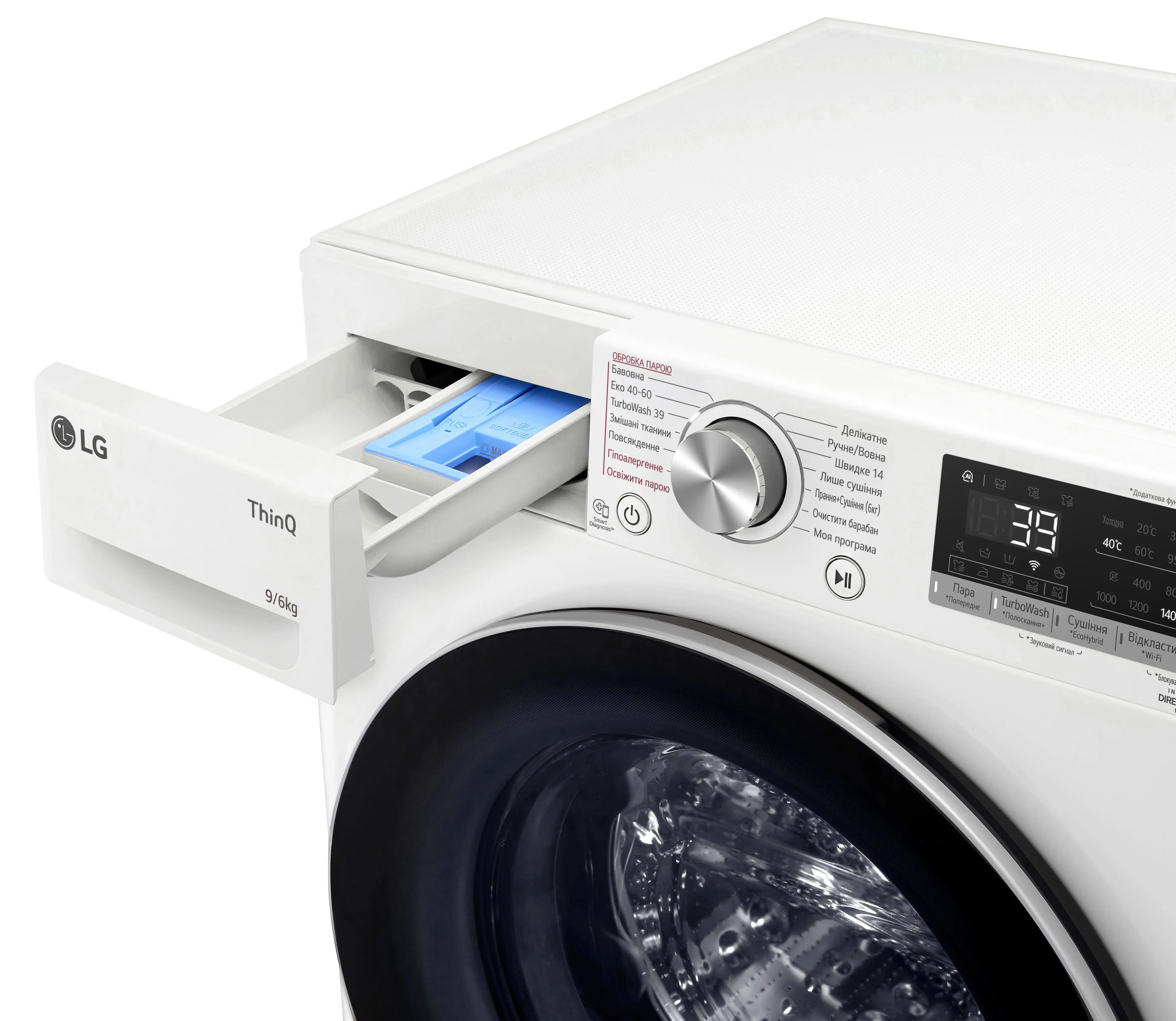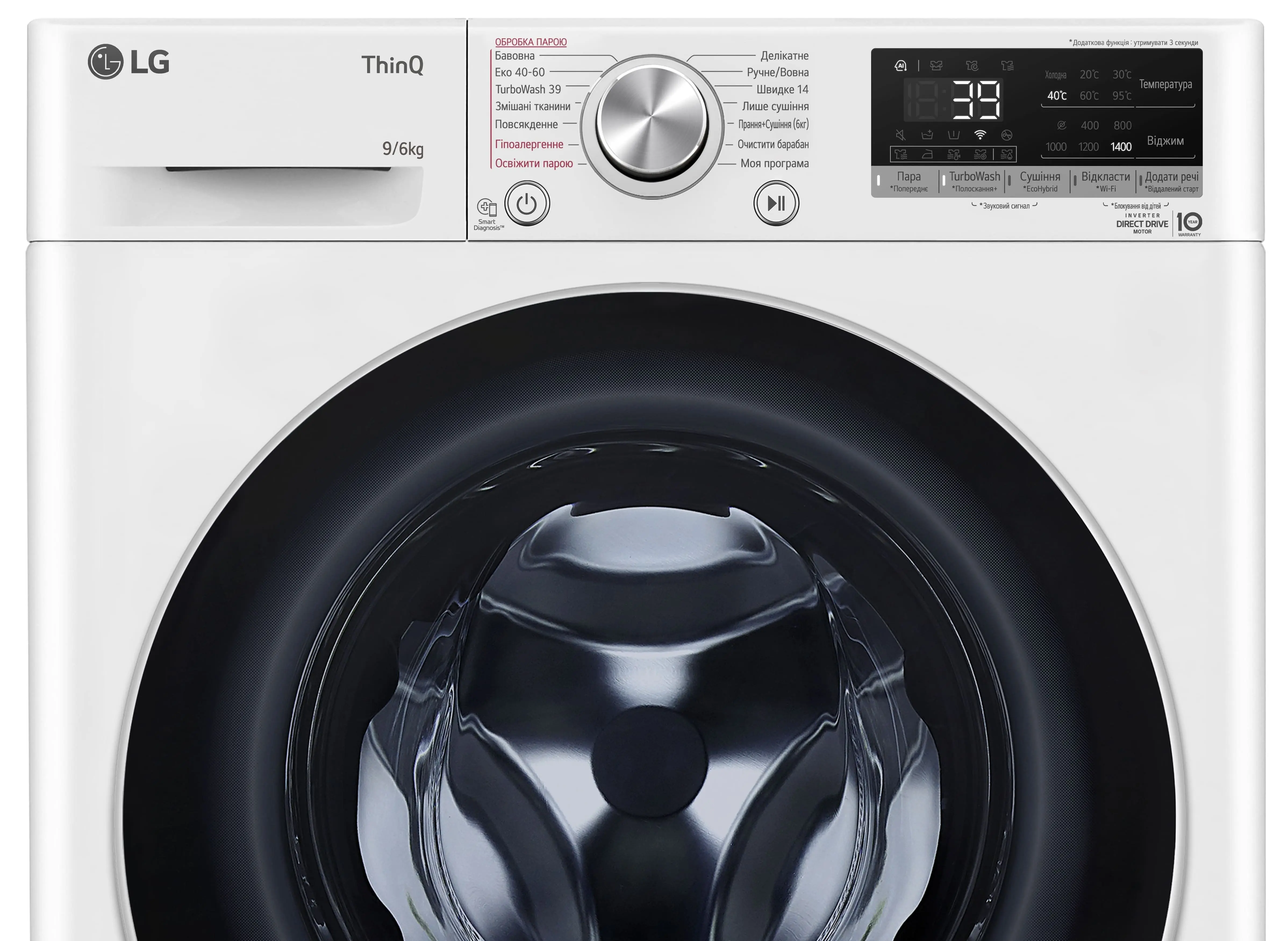 Прально-сушильна машина LG фронтальна, 9(6)кг, 1400, А, 56см, дисплей, пара, інвертор, білий