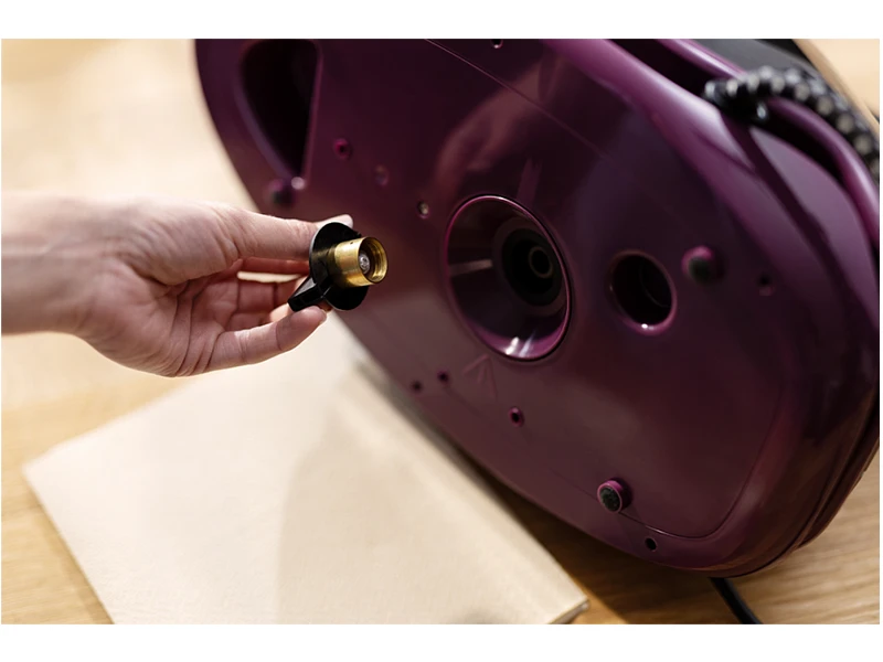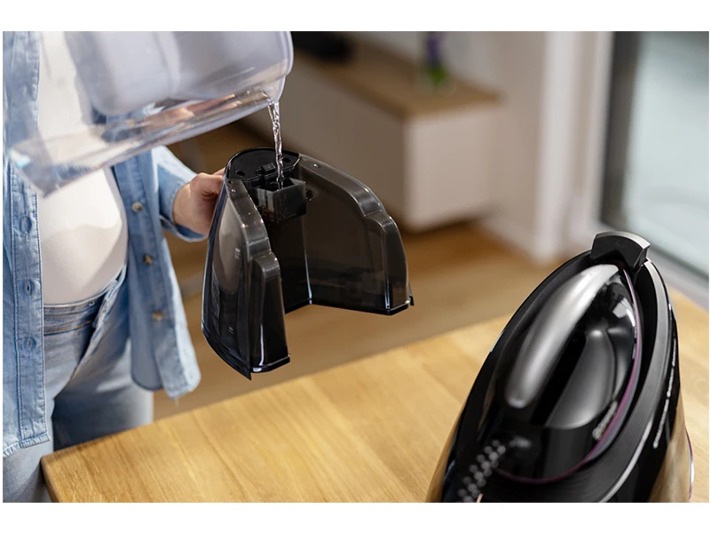 Резервуар для води, який легко знімається, вміщує до 1,5 л, чого вистачить на кілька годин прасування. Ви не втрачатимете час, постійно доливаючи воду. Бачок виготовлений зі злегка прозорого пластику, що дозволяє завжди мати огляд кількості води.