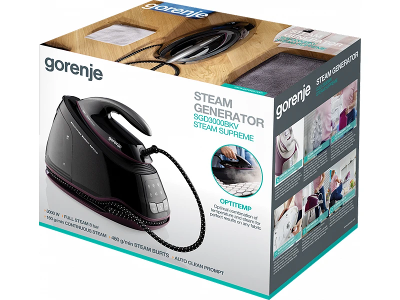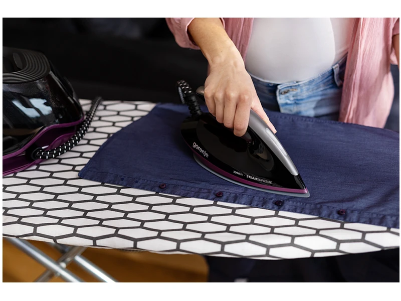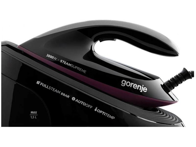 Завдяки тиску до 8 барів, безперервній подачі пари 160 г/хв, паровому удару 480 г/хв і високоякісній керамічній підошві Gorenje прасування стане вашою улюбленою роботою. 25 виходів пари забезпечують рівномірний розподіл пари та особливий догляд за всіма делікатними тканинами.