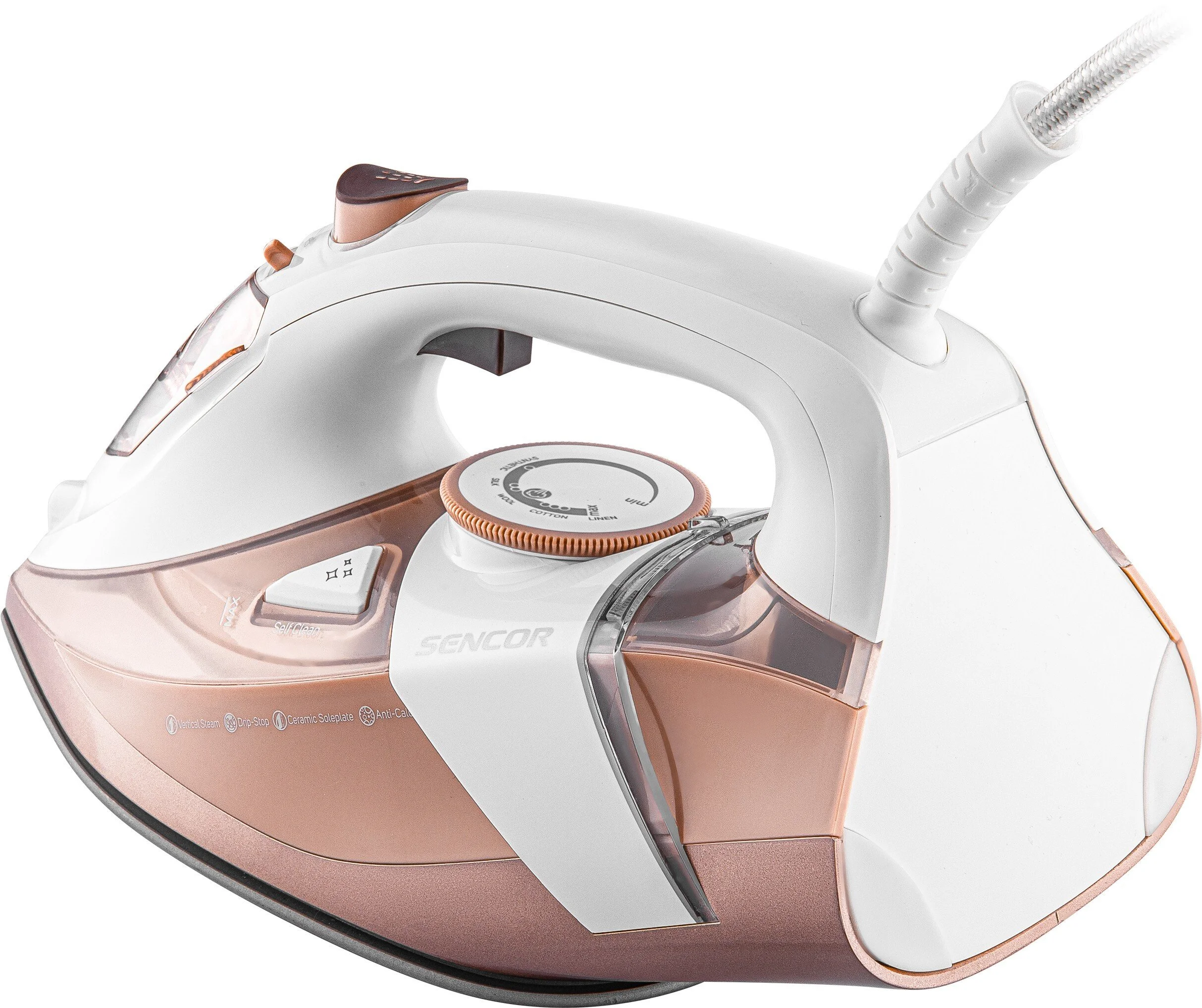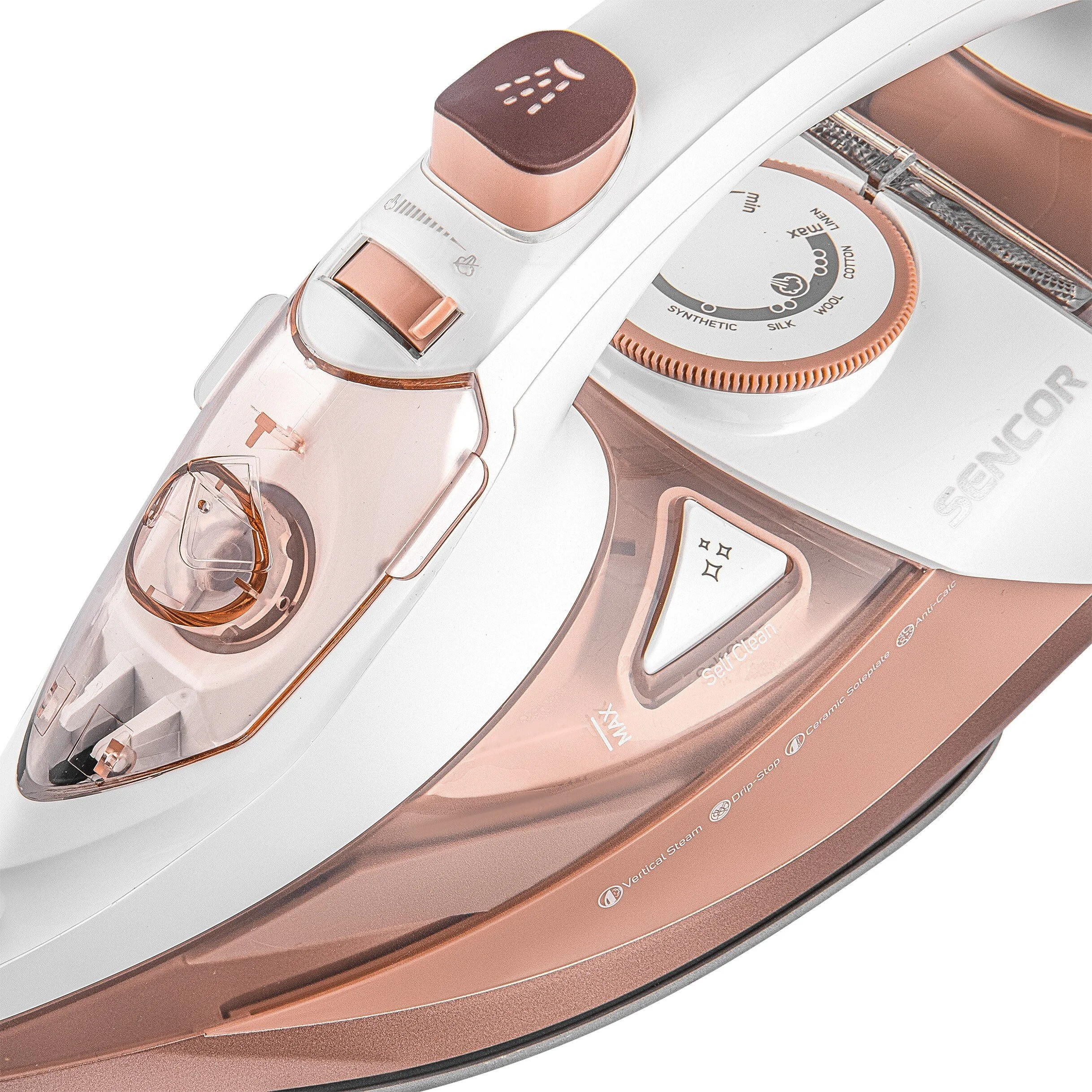 Праска Sencor, 3200Вт, 350мл, паровий удар -195гр, постійна пара - 45гр, керамічна підошва, біло-рож