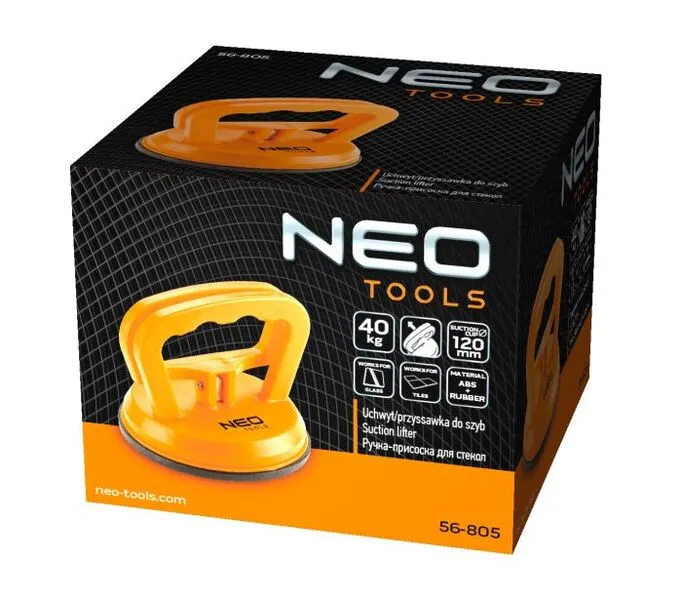 Присоска до скла NEO використовується для транспортування та монтажу скла та металевих і пластикових плит. Корпус виготовлений із високоякісного пластику. Гумова присоска забезпечує високий рівень комфорту та безпеки під час користування. Марка NEO відповідає очікуванням професіоналів.