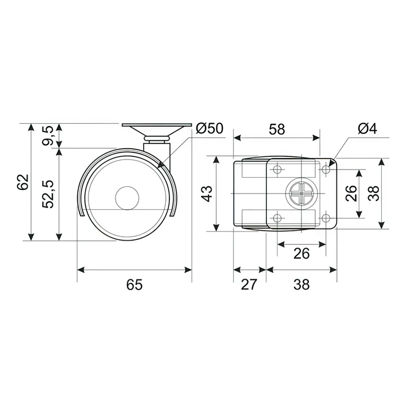 Меблевий ролик пластиковий з планкою DC D-50мм Чорний – це надійний і практичний компонент для мобільності меблів. Використовується для полегшення переміщення меблевих конструкцій, забезпечуючи плавний і безшумний хід.