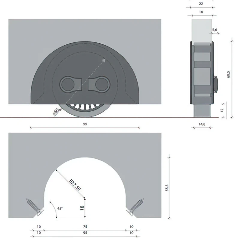 Меблевий врізний ролик OgTM ON/OFF ZAMA 1.1 D-60мм під плиту 18мм Алюміній/Сірий – це інноваційне рішення для мобільних меблів, що поєднує зручність пересування та можливість фіксації. Врізний механізм забезпечує прихований монтаж, що зберігає естетичний вигляд меблів.