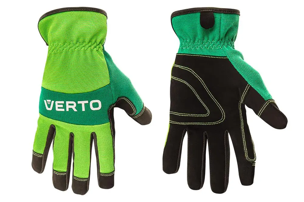 Рукавиці робочі VERTO розміром 8". Забезпечують захист долонь від бруду, подряпин, затискання та шкідливих умов під час праці. Виготовлені з високоякісної інструментальної сталі. Виявляють значну стійкість на розрив. Запевняють зручність під час користування, водночас запобігаючи вислизанню інструмента з рук. Маркування CE ― це гарантія безпеки, яка доводить, що продукт відповідає всім вимогам Європейського Союзу. Марка VERTO адресована майстрам, які займаються дрібним ремонтом.