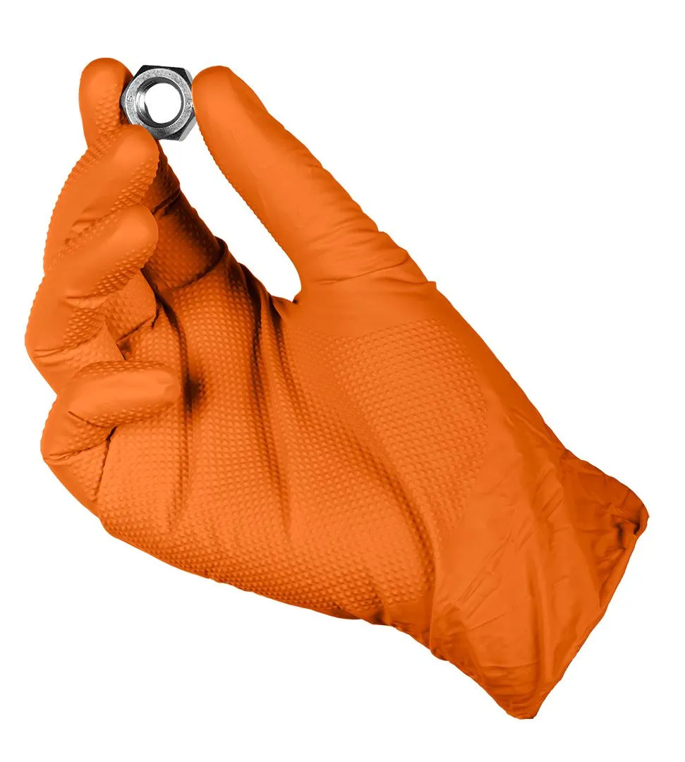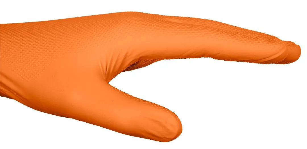 Перфоровані нітрилові рукавички, помаранчеві, 50 штук, розмір L, 97-690-L від NEO - це рукавички, виготовлені з міцнішого матеріалу, ніж звичайний нітрил, що надає їм більшої стійкості до проколів або розривів у суворих умовах. Текстурована алмазна поверхня відводить рідини і забезпечує найкраще захоплення. Рукавички знижують навантаження на руку та підвищують безпеку користувача. Вони містять порошку, що рекомендується для алергіків. Ця модель також відрізняється двосторонністю, тому рукавички ідеально сидять на обох руках, що робить їх більш швидким та легким вдяганням.