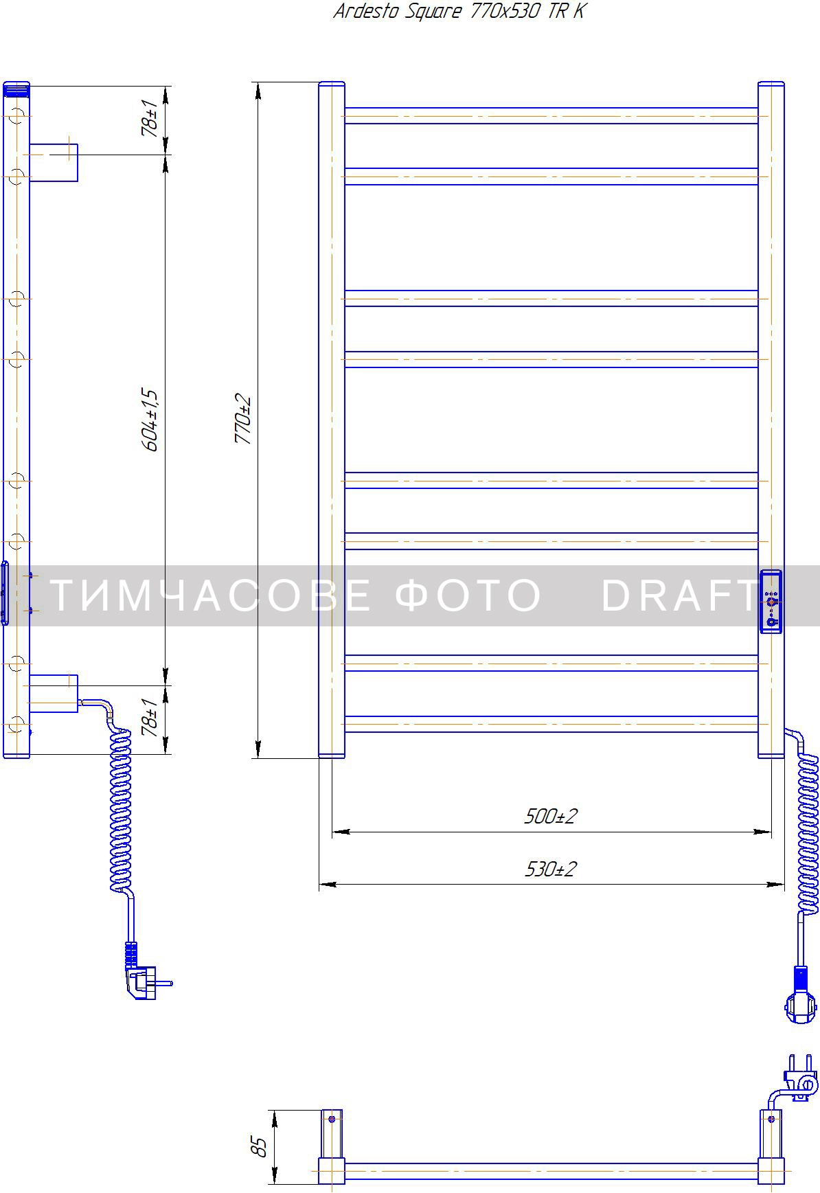 Рушникосушка Ardesto електрична Square-TR K, 770x530х80мм, таймер-регулятор, сталь, чорний матовий