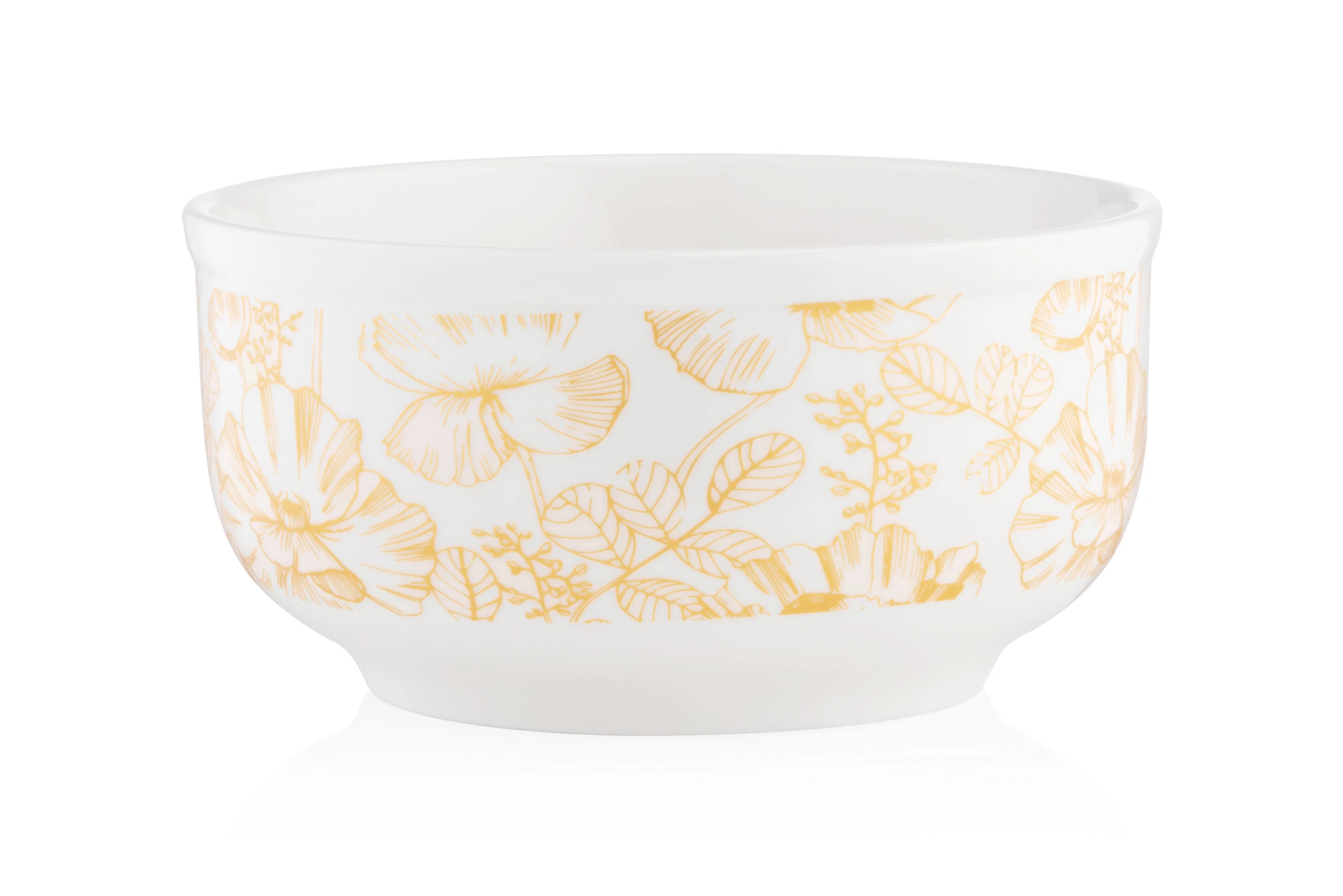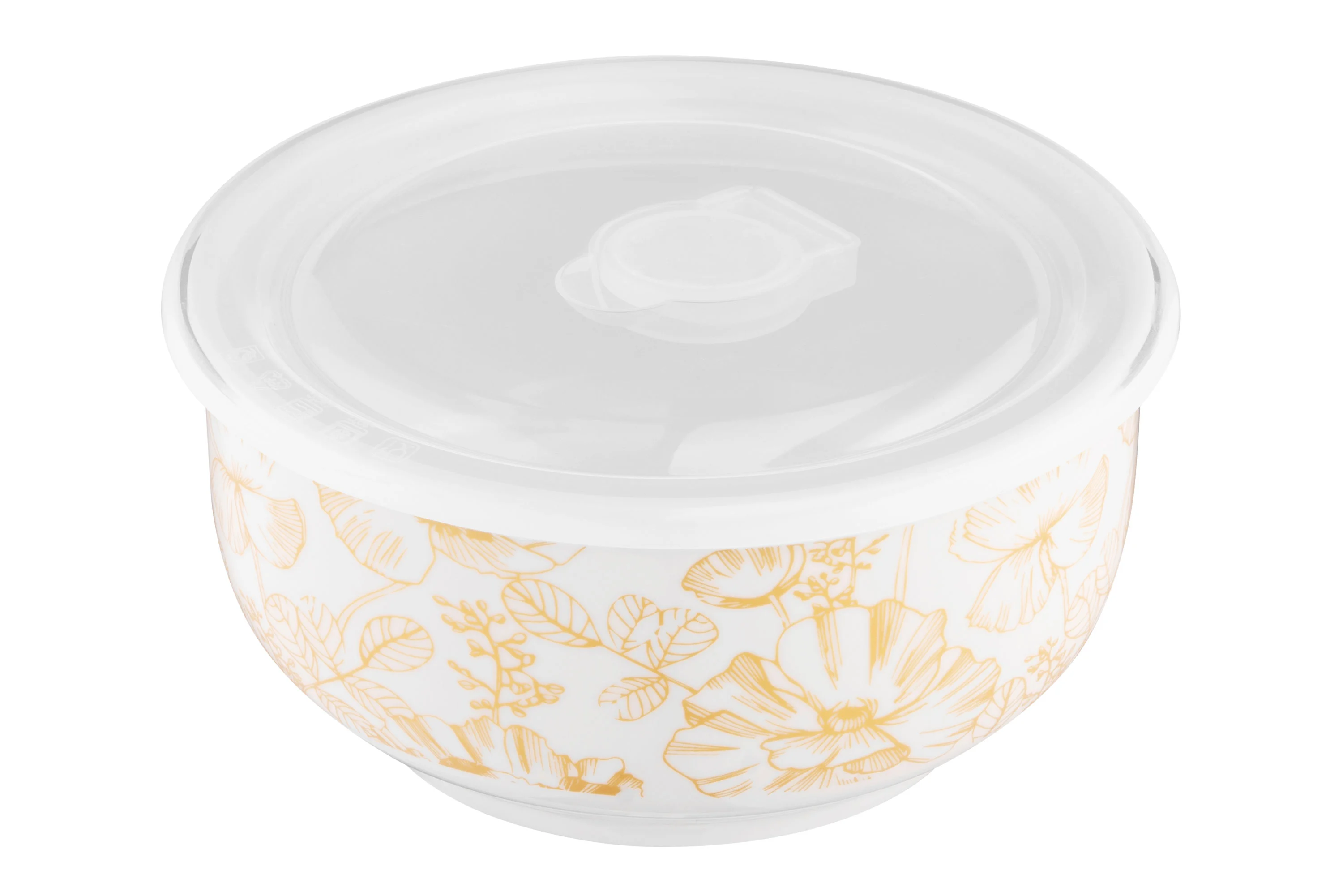 Для гігієнічного зберігання продуктів у холодильнику в пригоді стане ємний салатник із кришкою бренда ARDESTO. Його об’єм – 800 мл, а діаметр становить 14 см. Вироблений із порцеляни, боки посуду оздоблює жовтий рослинний візерунок. Допустиме використання в мікрохвильовій печі та миття в посудомийній машині, проте без кришки.
