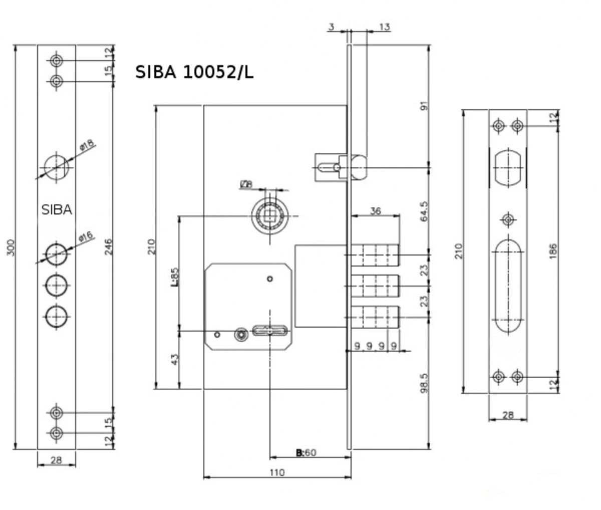Основне про модель — Замок SIBA основний сувальдний для металевих дверей 10052/L, 5 ключів, 85/60 мм Хром