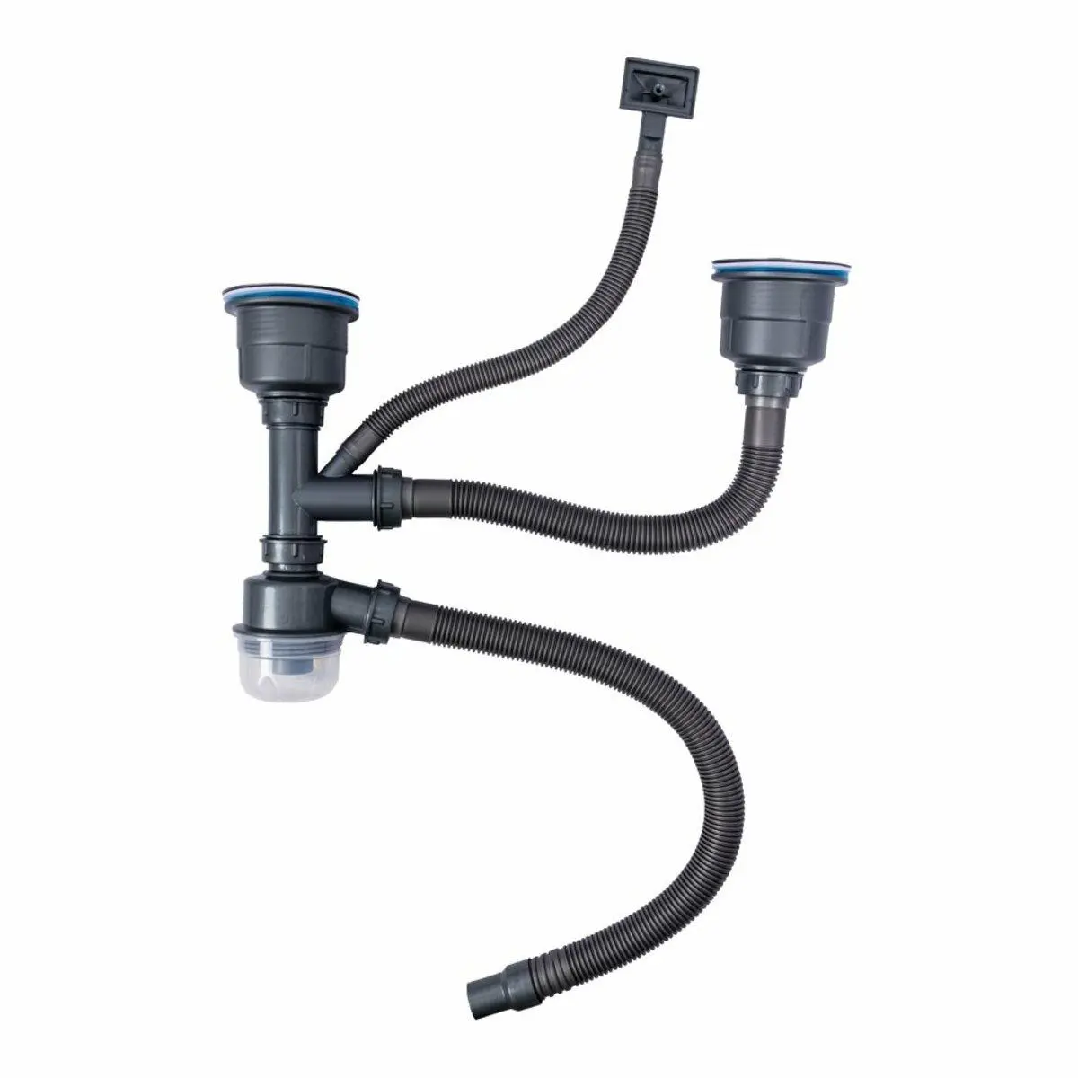 Сифон подвійний для мийок Handmade TM Valeso (верхівка чорна, арт, 905)