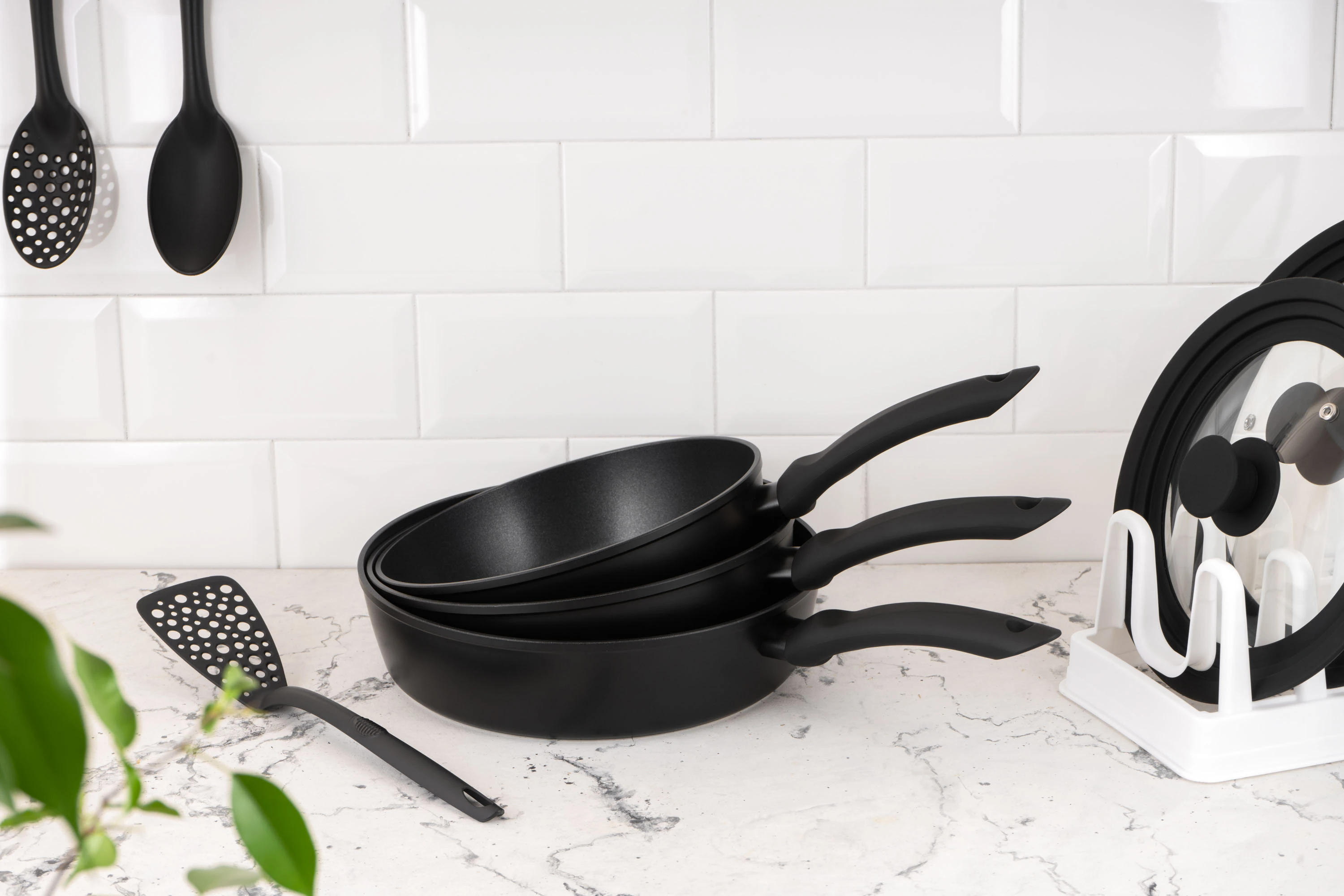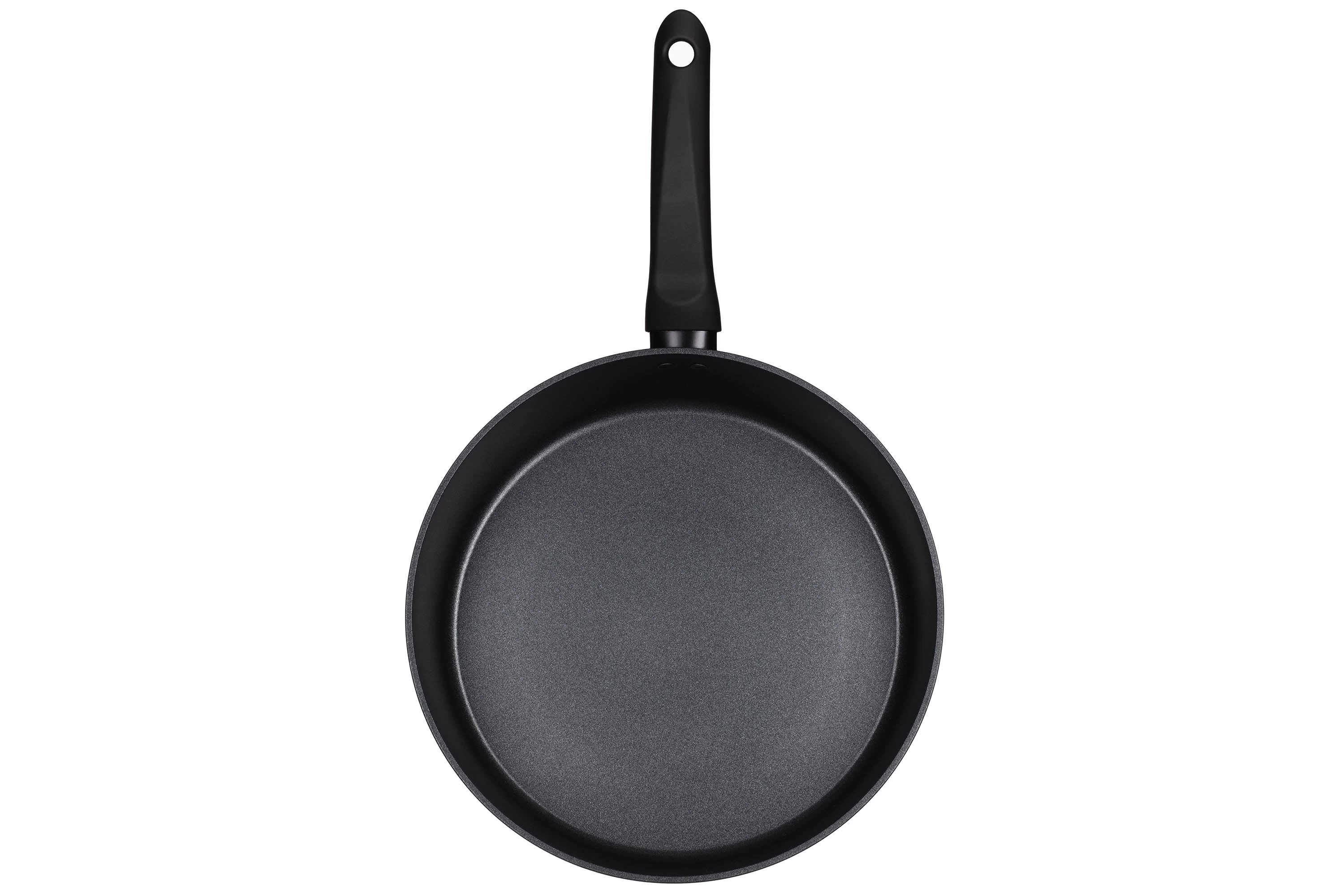 Містка сковорода діаметром 28 см – «мастхев» для кожної кухні. Модель виготовлена з кованого алюмінію, руків’я має soft-touch-покриття. За висоти 7 см товщина стінок складає 2,6 мм, а дна – 4 мм. Виріб не рекомендовано мити в посудомийній машині. Зсередини поверхня має протипригарне покриття, а щоби сковорідка слугувала довше, під час приготування необхідно використовувати силіконові чи інші неметалеві аксесуари.