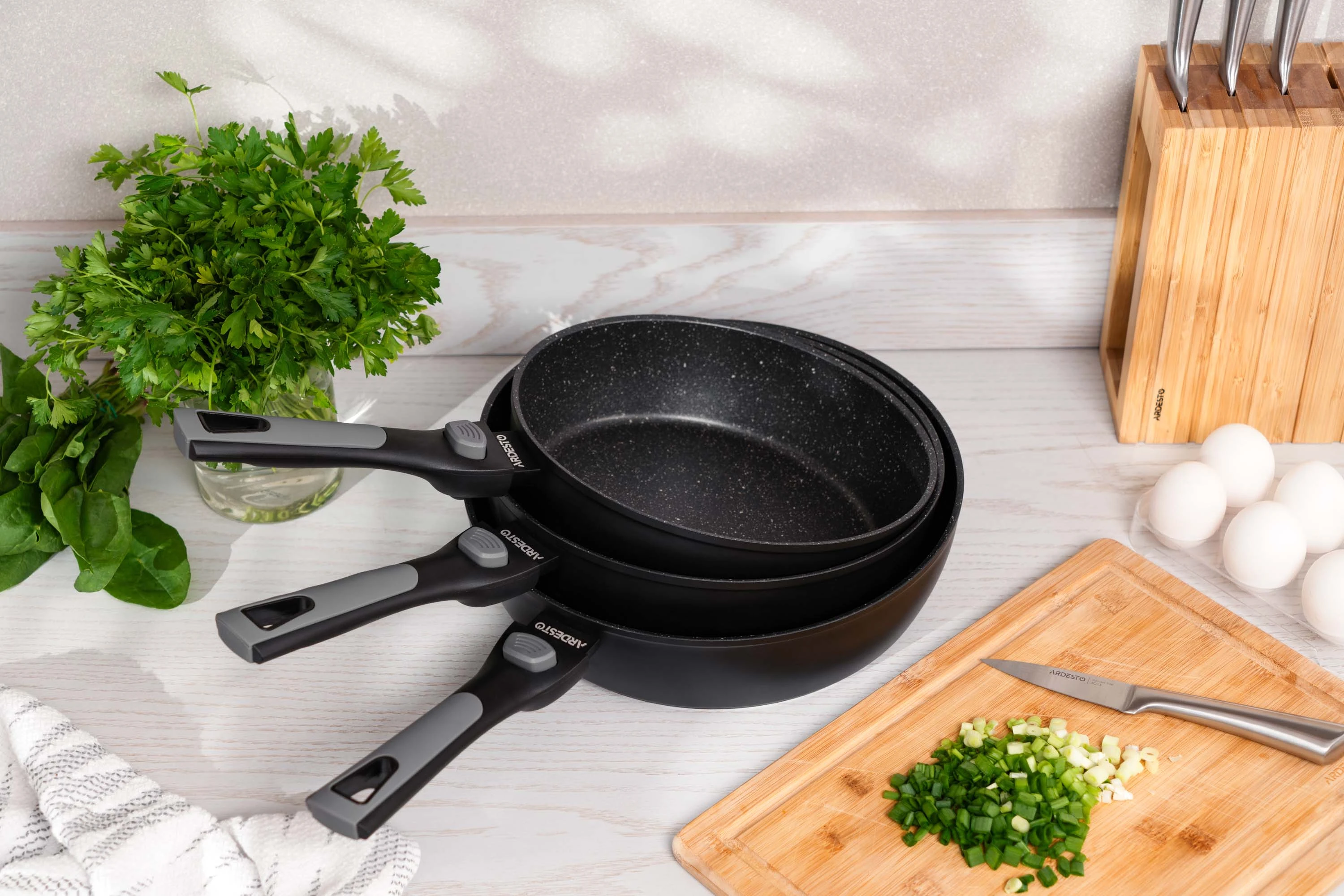 Сковорода глибока зі знімною ручкою Ardesto Gemini Bari, 28см, алюміній, чорний