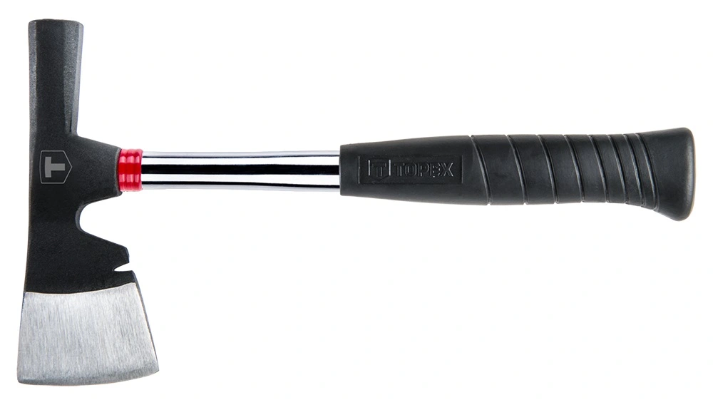 Сокира універсальна TOPEX масою 600 г. Обух сокири виготовлений із загартованої сталі відповідно до вимог стандарту DIN 5108, сокирище металеве. Гумована ручка ергономічної форми зручно міститься в долоні, що забезпечує високий комфорт експлуатації. Сертифікати TÜV і GS є гарантією надійності продукту. Марка TOPEX адресована майстрам, які займаються дрібним ремонтом.