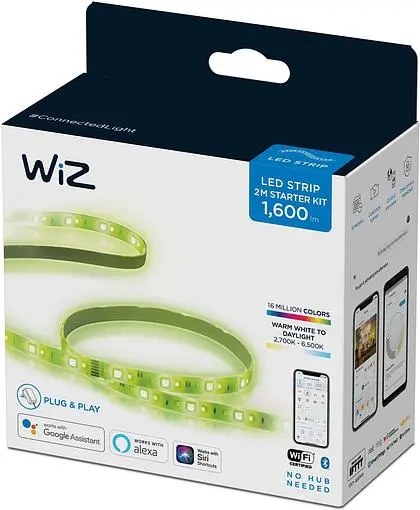 Розумна світлодіодна стрічка WiZ LEDStrip. Миттєва готовність до використання. Керування з будь-якого місця. Регульований теплий та холодний білий колір, а також попередньо задані режими. Автоматичне увімкнення освітлення за розкладом.
