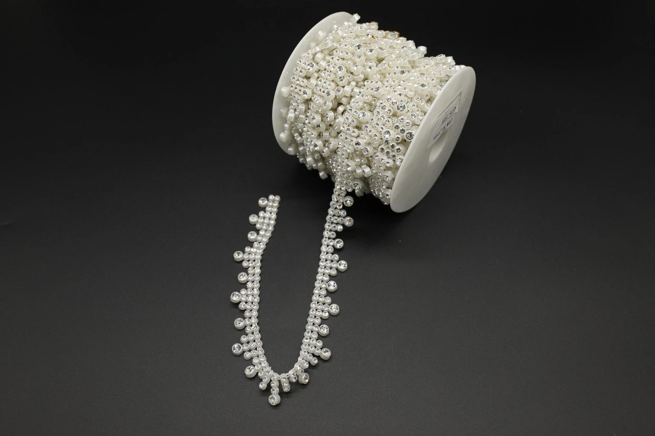 Стрічка з намистин – це елегантний декоративний матеріал, який додає виробам вишуканості та розкішного вигляду. Намистини рівномірно закріплені на стрічці, що забезпечує зручність у роботі та акуратний вигляд готових виробів.