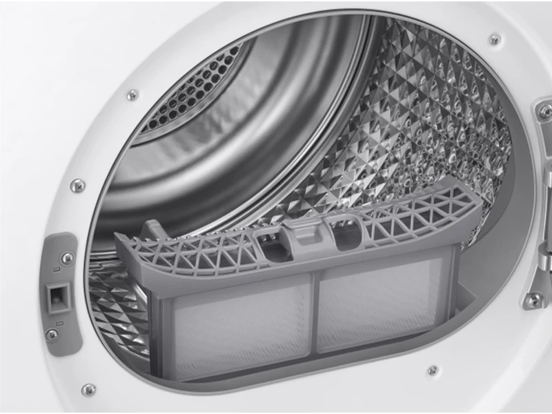 Удосконалений двошаровий фільтруючий елемент 2-в-1 захищає теплообмінник і забезпечує стабільну роботу сушильної машини. При забрудненні фільтра машина подає сигнал, попереджаючи про очищення.