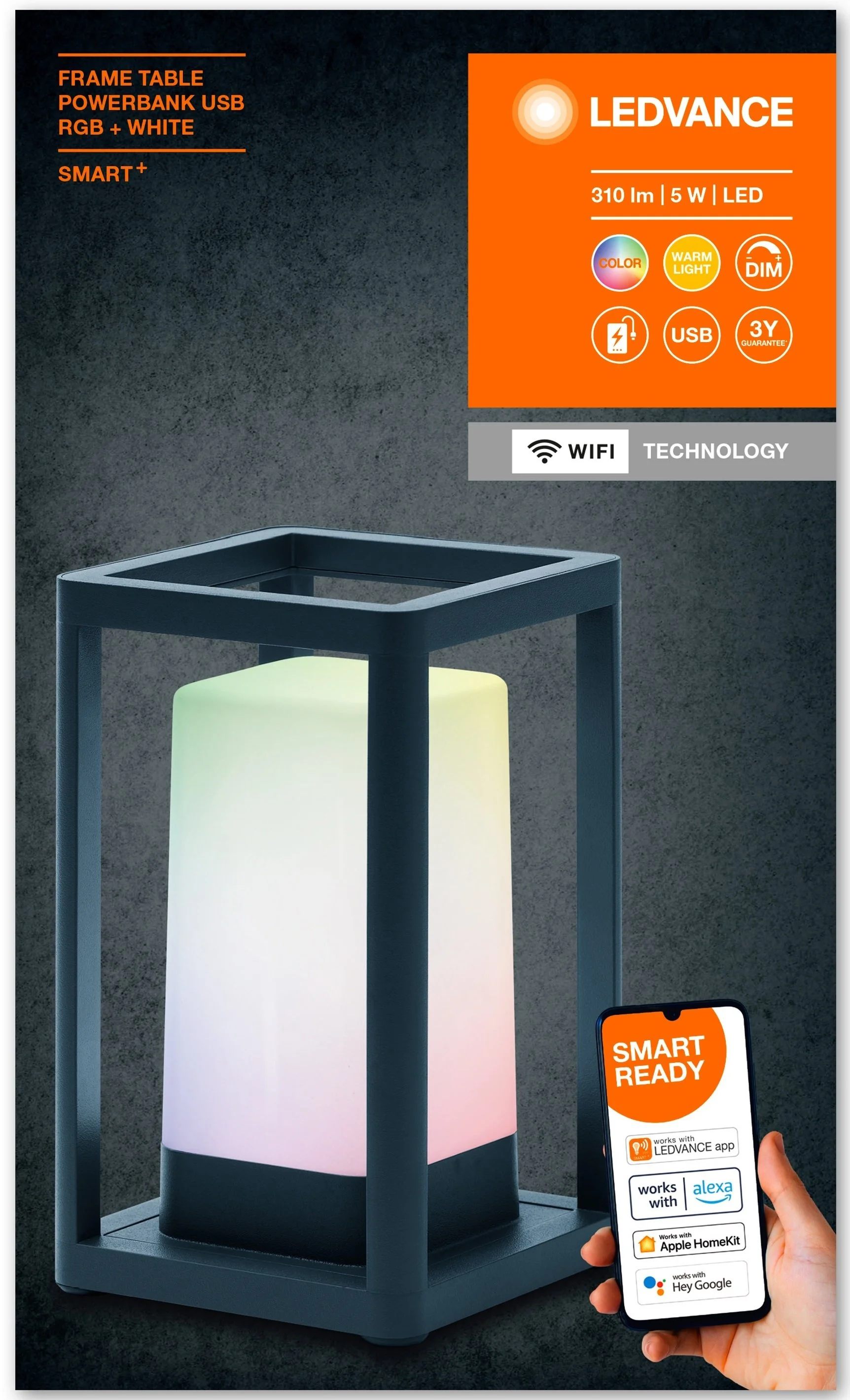 Світильник LEDVANCE TABLEFRAME 5Вт 3000К 270Лм RGBW 5200мАг Wi-Fi IP44 чорний