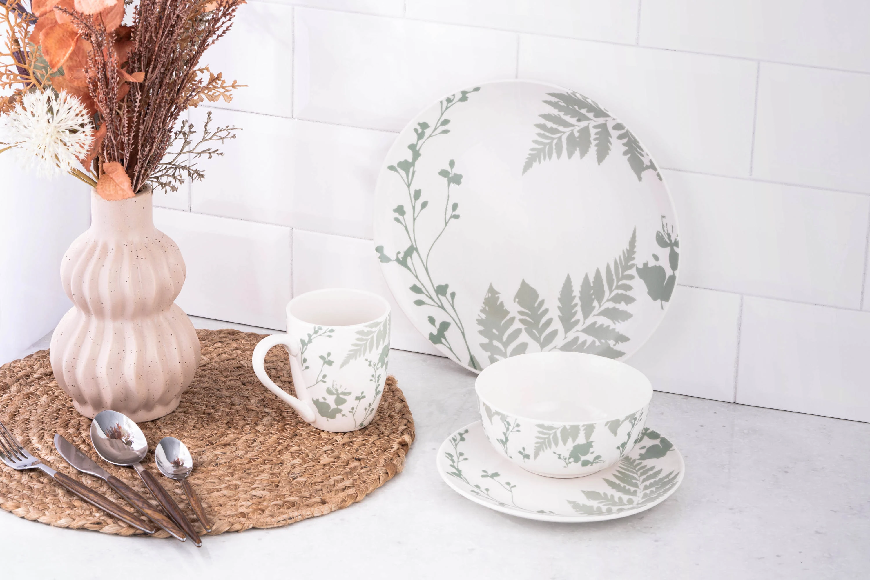 Тарілка десертна Ardesto Capri, 19.2см, порцеляна, біло-зелений