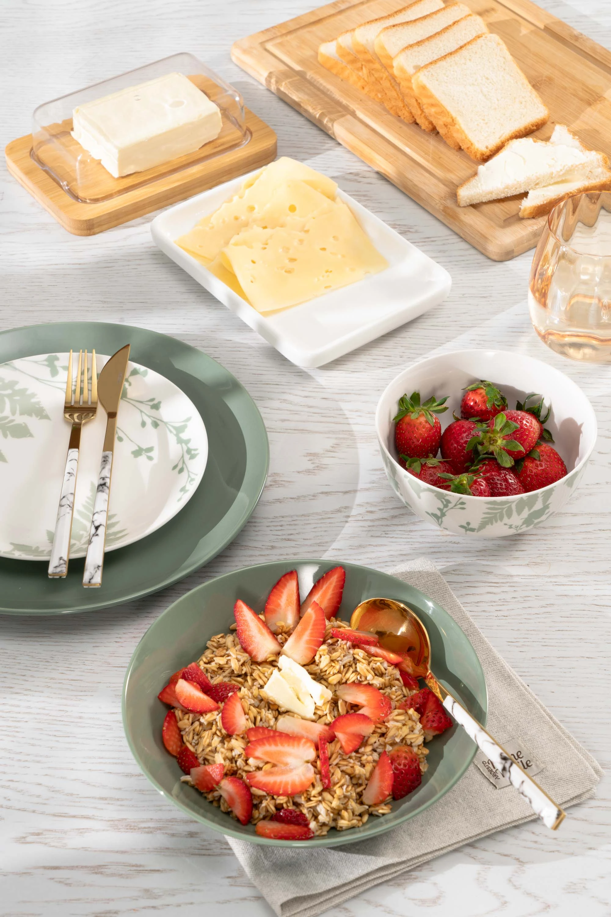 Тарілка обідня Ardesto Capri, 26.8см, порцеляна, біло-зелений