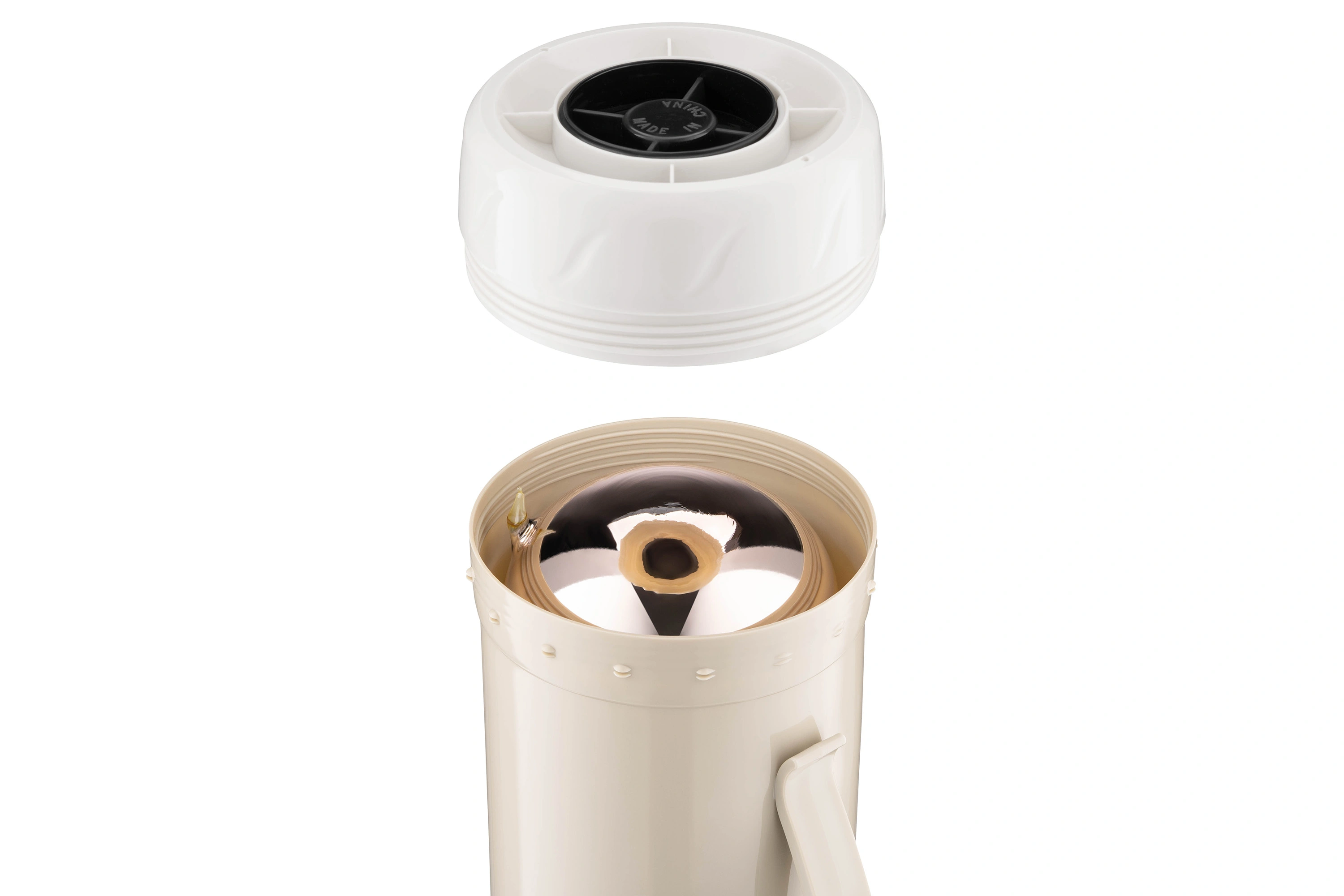 Термос ARDESTO Gemini Gourmet виготовлено з пластику бежевого кольору. Об’єм становить 2 000 мл. У комплекті 2 чашки. Скляна колба добре утримує тепло, не поглинає сторонніх запахів і не вступає в реакцію з продуктами. Термос оснащено кришкою з різьбою, що щільно прилягає, унеможливлюючи протікання та зберігаючи температуру гарячого та холодного напою 24 год. Догляд за посудом нескладний, проте мити в посудомийній машині не можна.
