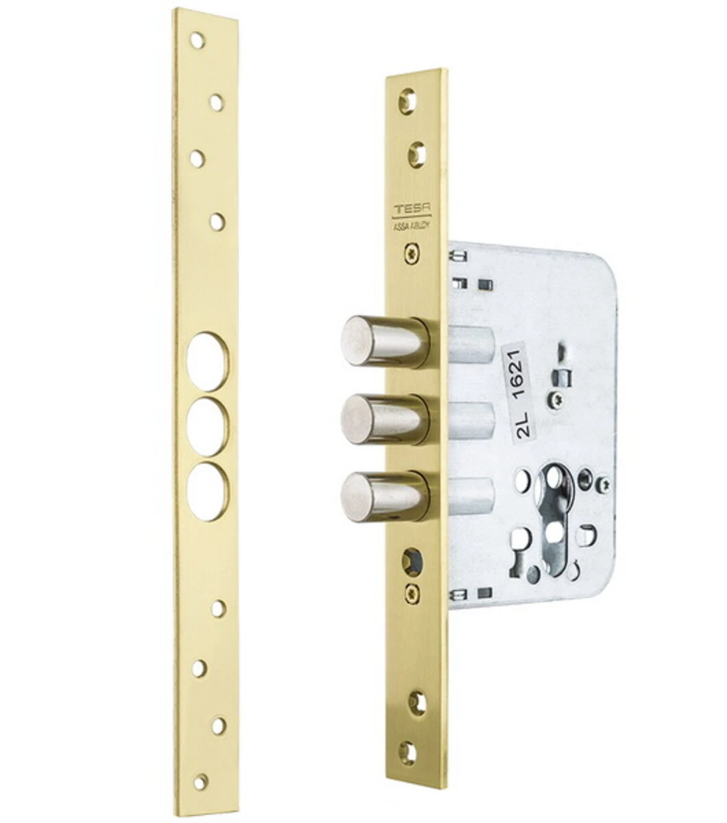 Модель TESA R201B сумісна з циліндрами євростандарту, ручками на планках, броненакладками та декоративними накладками під колір латуні. Також замок добре поєднується з основними механізмами серій TESA або іншими замками європейського типу, створюючи комплексну систему захисту. Використовується з відповідною планкою, що входить у комплект або підбирається окремо.