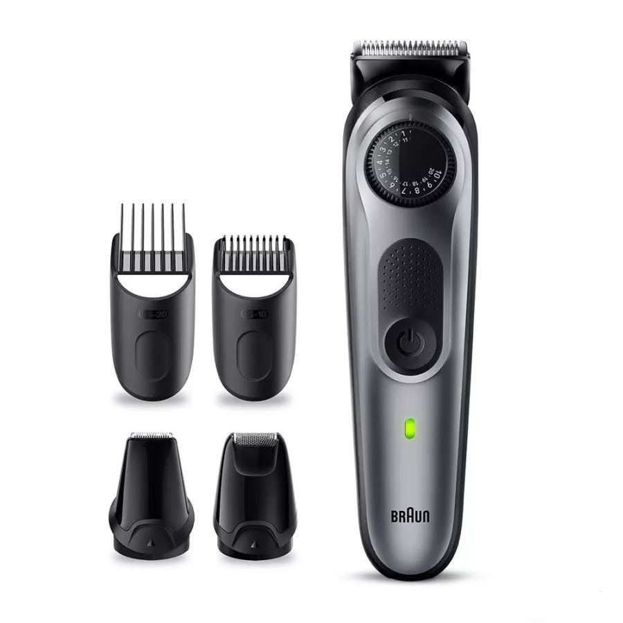 Тример для бороди волосся на голові. Косметичка. Два регульовані гребені (на 0,5-10 мм і на 10,5-20 мм). Насадка точкова бритва. Насадка точковий тример. Тример оснащений 40 налаштуваннями довжини з кроком 0,5 мм. Живлення: Li-Ion від акумулятора. Час роботи від акумулятора 100 хв. Час заряджання 60. Індикатор заряджання. Зарядний пристрій адаптується до мережі будь-якої країни світу. Ножі, що самозаточуються, з необмеженим терміном служби.