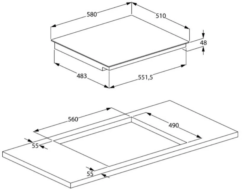 - Розміри для вбудовування 560x490