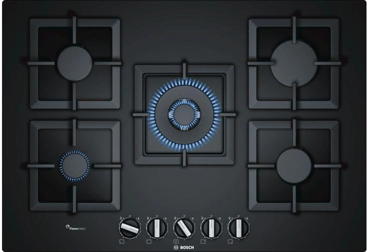 Варильна поверхня Bosch газова на склі, 75см, чавун, чорний