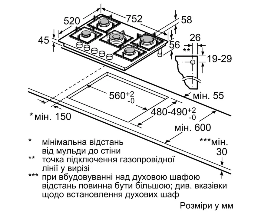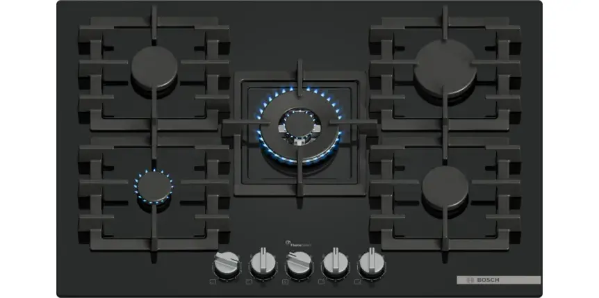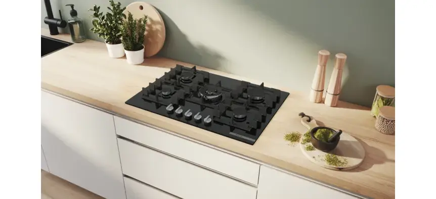 Газова варильна поверхня СЕРІЯ 6 із загартованого скла чорного кольору : висока якість та відмінний дизайн, щоб Ви сповна насолоджувалися приготуванням улюблених страв.