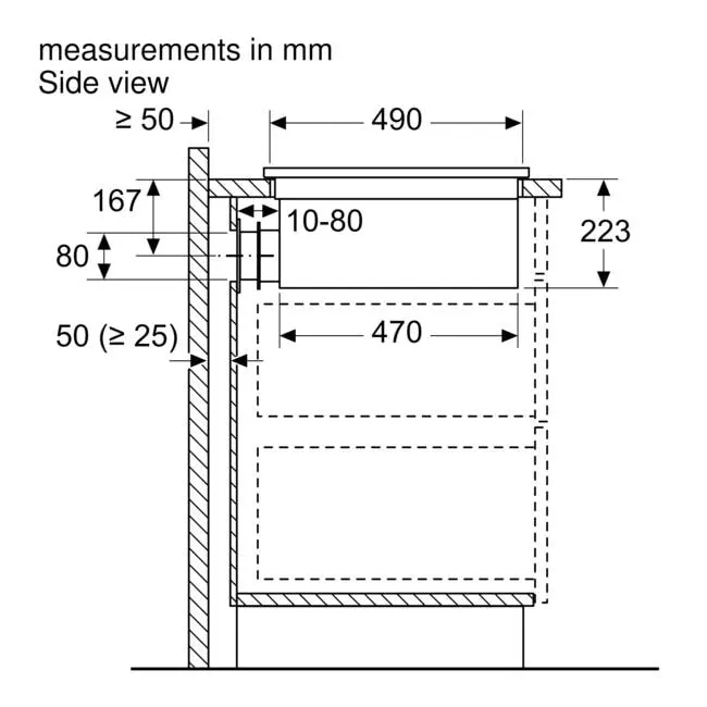 * 2 x 400 мм x 240 мм, 3,3 кВт (макс. рівні потужності 3,7 кВт) Індукційна або 4 x 190 мм, 2,2 кВт (макс. рівні потужності 3,7 кВт)