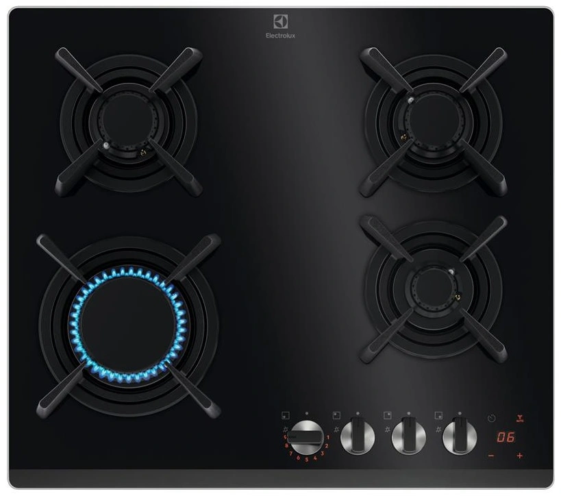 Варильна поверхня Electrolux газова на склі, 60см, чавун, електрон. керування, Hob2Hood, чорний