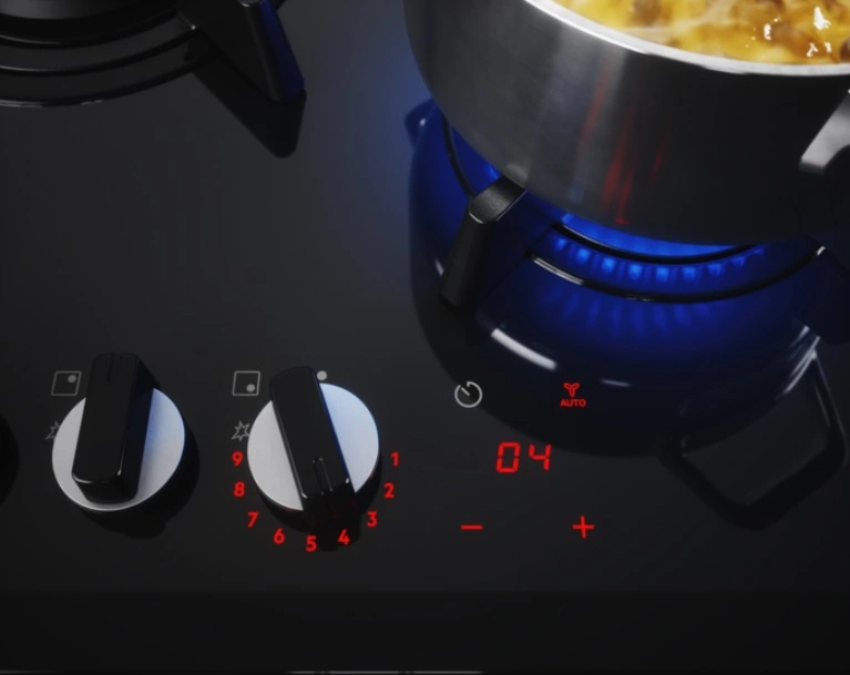 Яскраві світлодіодні індикатори газової варильної панелі FlameLight показують, коли конфорка увімкнена або вимкнена. Вони також дозволяють контролювати та вибирати між дев'ятьма рівнями потужності полум'я, легко налаштовуючи інтенсивність полум'я під час готування. Надійне готування за допомогою StepPower. Налаштування StepPower дозволяють точно керувати полум'ям вашої газової варильної поверхні. Встановлюйте рівень нагрівання від 1 до 9, легко вибираючи потрібну потужність і не нахиляючись для перевірки.