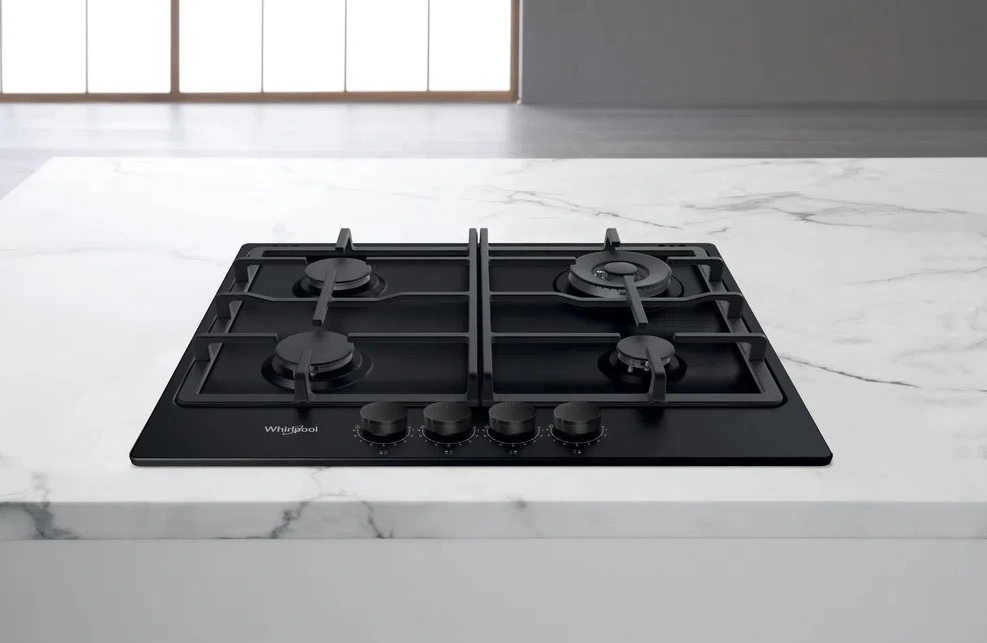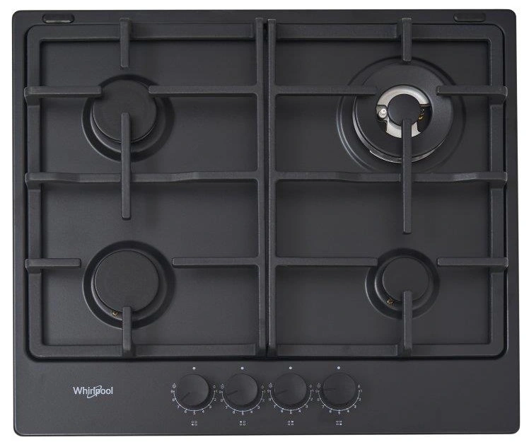 Варильна поверхня Whirlpool газова, 60см, чавун, конфорка з подвійним рядом полум'я, чорний