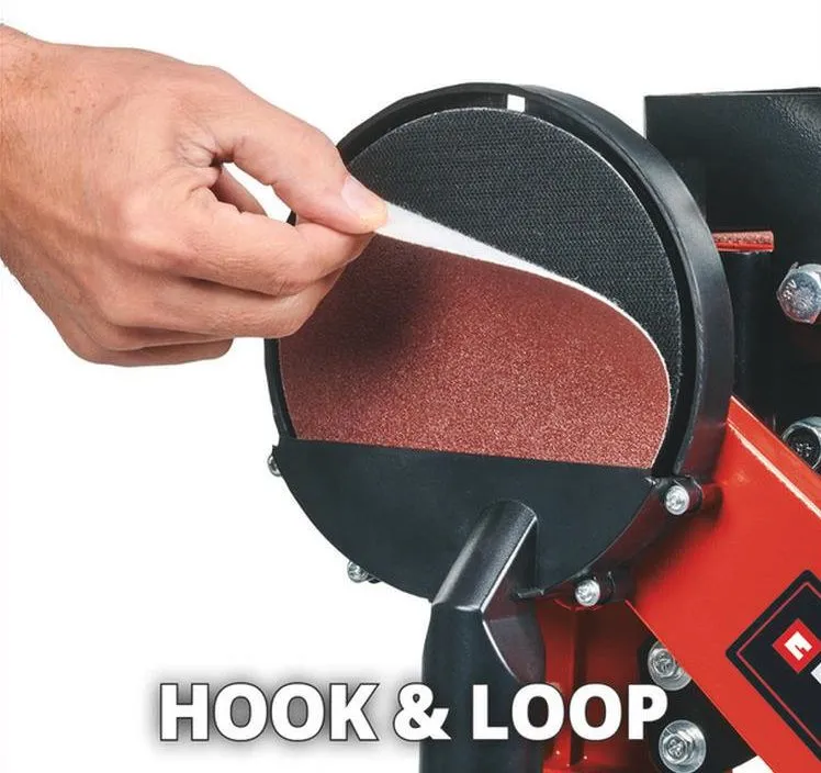 Вертикальна стрічково-дискова шліфувальна машина/шліфувальна машина Einhell TC-US 380 - потужний помічник потужністю 380 Вт для стрічкового та дискового шліфування/шліфування, оснащений поворотним шліфувальним пристроєм з упором для заготівлі. Для зручності переналагодження є натяжний пристрій з можливістю центрування шліфувальної стрічки, а також кріплення з гачком та петлею на дисковій шліфувальній машині/шліфувальному верстаті. Алюмінієвий стіл може нахилятися, він міцний і не схильний до деформації.