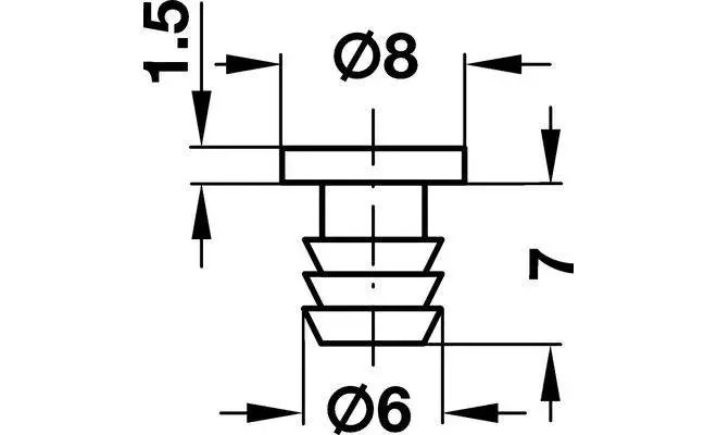 Відбійник меблевий, виготовлений з пластику. Є в наявності білого та коричневого кольору, а також, прозорого забарвлення. Стійкий до ультрафіолетового випромінювання. Діаметр кришки 8мм. Слугуватиме довго та надійно завдяки високій якості використаних матеріалів.