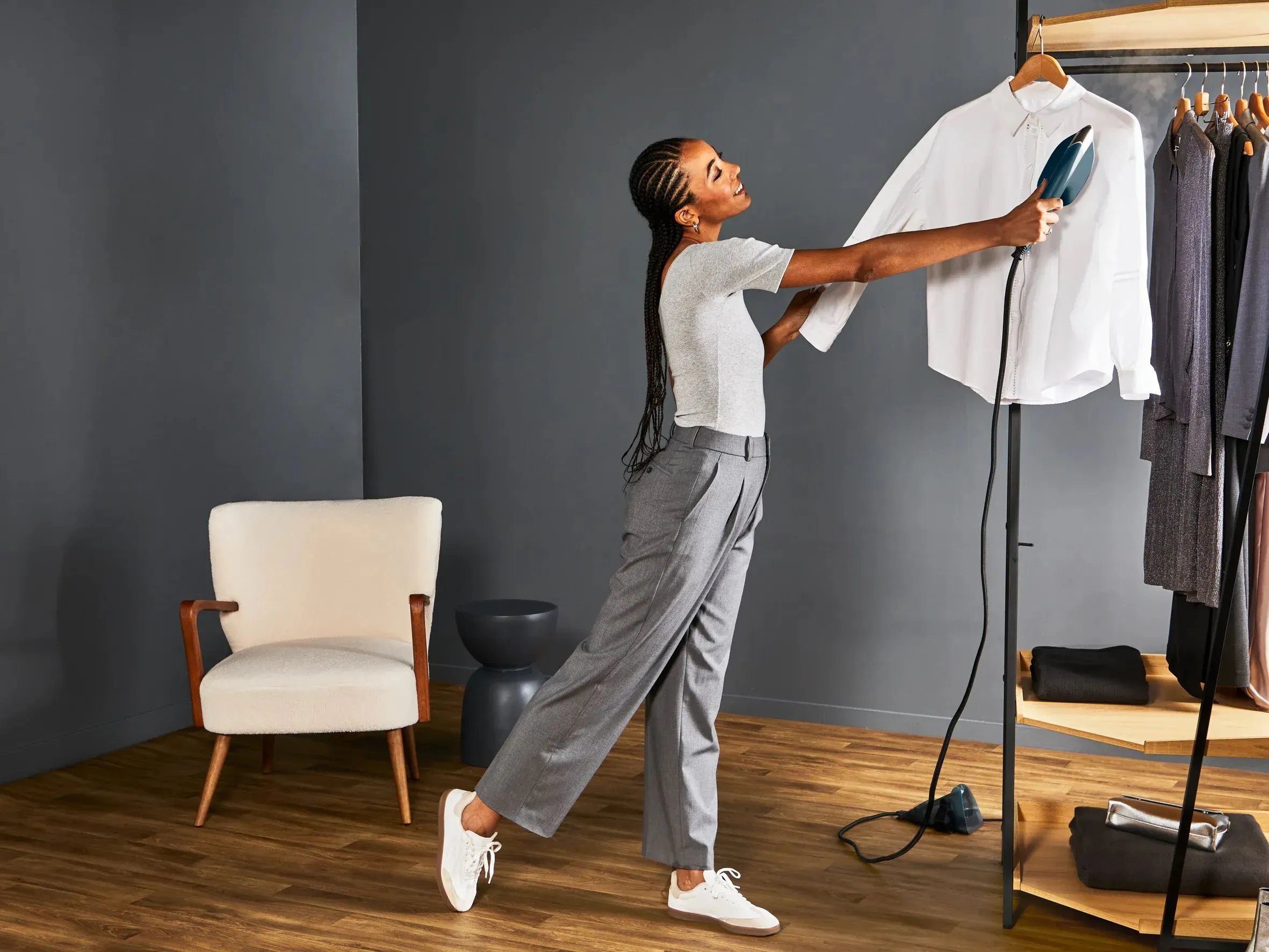 Відпарювач Tefal Duo Power 2в1 JF4032E0 — потужний та зручний пристрій із керамічною підошвою для легкого догляду за одягом. Має потужність 1700 Вт, резервуар на 400 мл, забезпечує постійну подачу пари 25 г/хв і паровий удар 180 г/хв для ефективного розгладжування. Компактний дизайн і можливість відпарювання у вертикальному та горизонтальному положеннях роблять його ідеальним для будь-яких типів тканин.