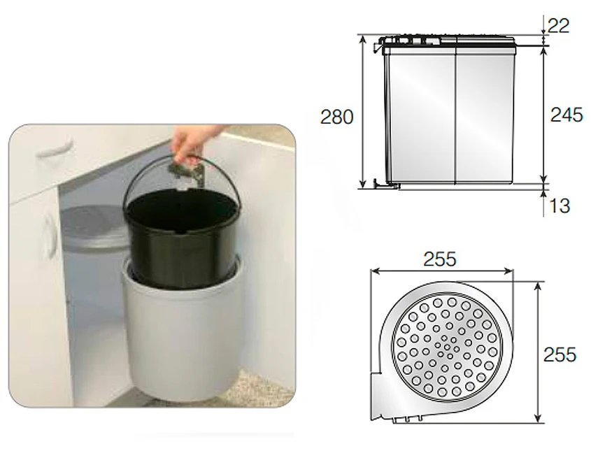 Відро для сміття Mesan - це надійний та елегантний аксесуар для вашої кухні чи іншого приміщення. Воно виготовлене з високоякісних матеріалів, які забезпечують довговічність та стійкість до корозії та інших видів пошкоджень.