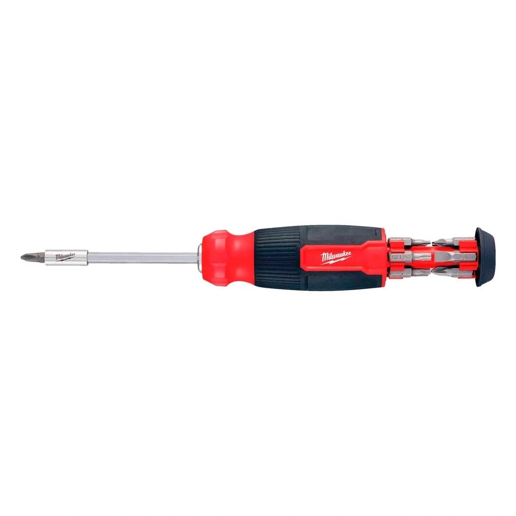 Ця універсальна викрутка Milwaukee 14-в-1 поєднує в собі міцність, зручність та багатофункціональність. Завдяки вбудованому зберіганню бітів у руків'ї, ви завжди матимете під рукою необхідні насадки. Тріскачка з металевим механізмом забезпечує високий крутний момент та швидке закручування.