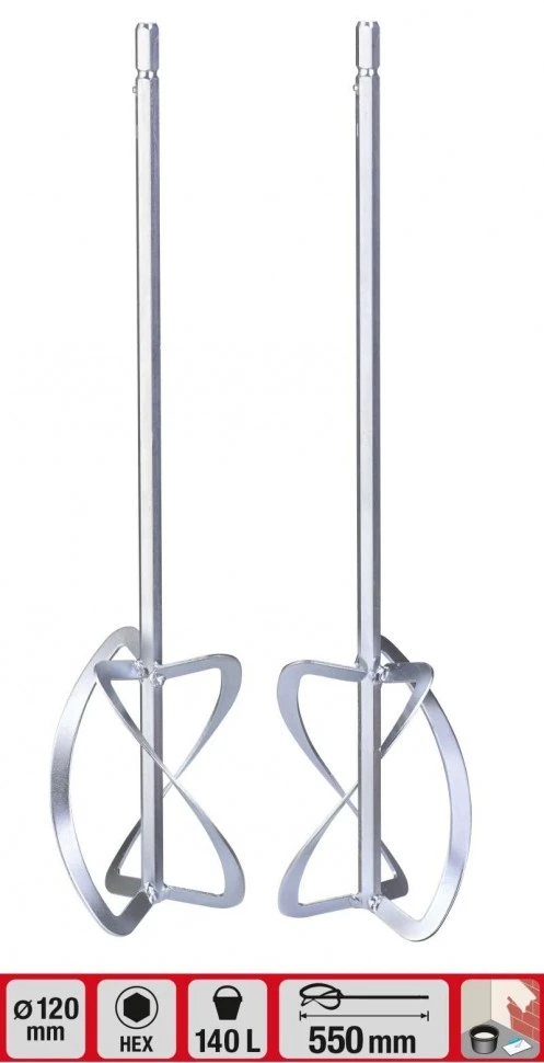 Набір вінчиків 2 шт для будівельного міксера Einhell TE-MX 1600-2 CE Twin (4258561). Довжина 550 мм, діаметр 120 мм, хвостовик HEX.