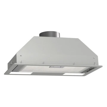 Ця вбудована витяжка має інтегрований дизайн і виконана з пофарбованого металу сірого кольору. Вона працює в двох режимах: відвід повітря і рециркуляція, що дозволяє вибрати найбільш підходящий варіант для вашої кухні.