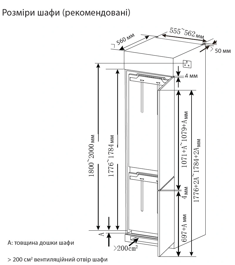 Холодильник ARDESTO вбуд. з нижн. мороз., 177x54.5x54, xолод.відд.-180л, мороз.відд.-68л, 2дв., А+,