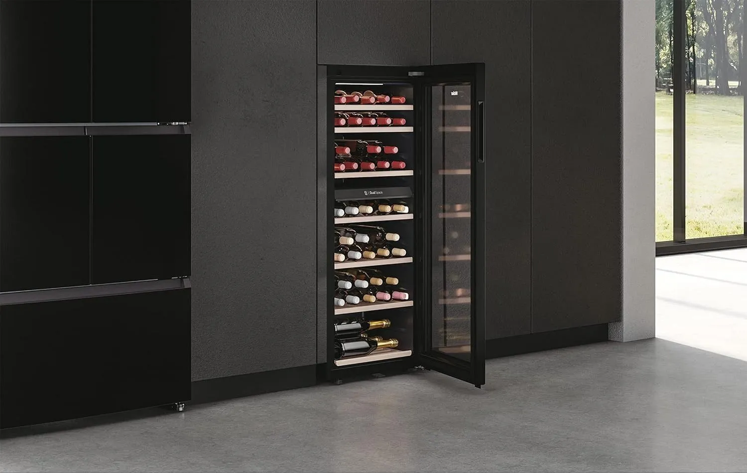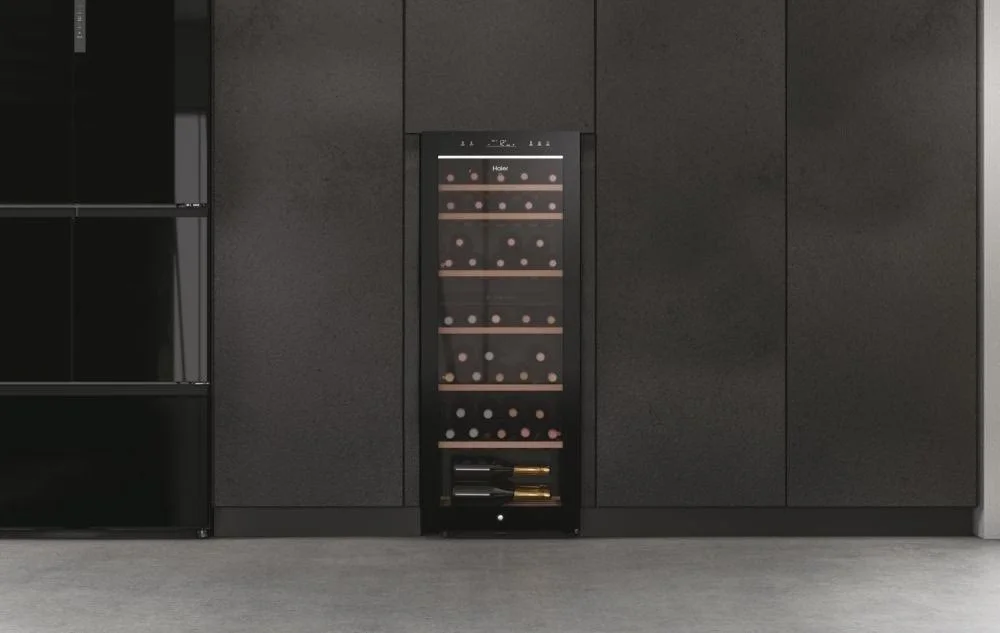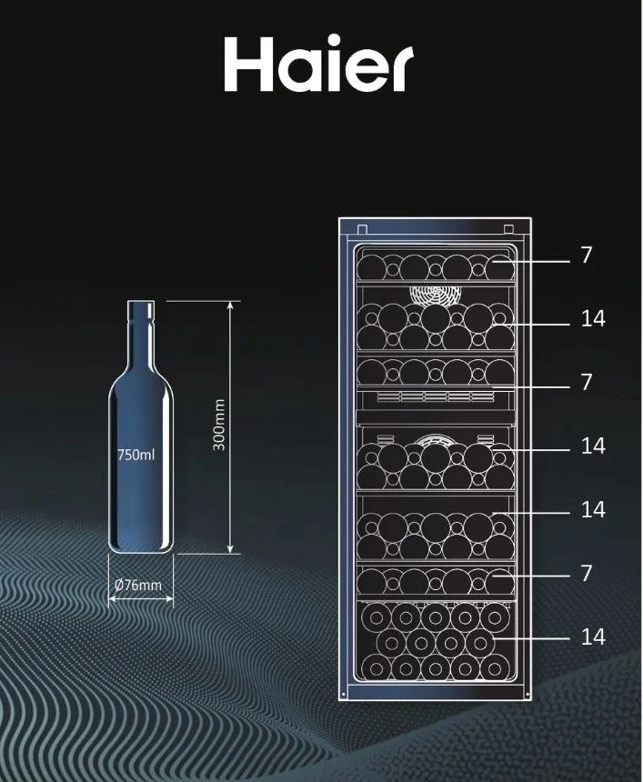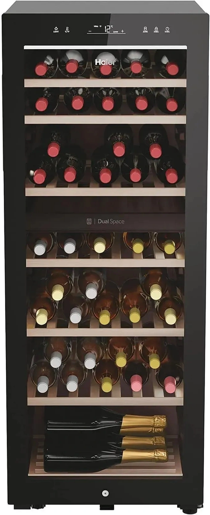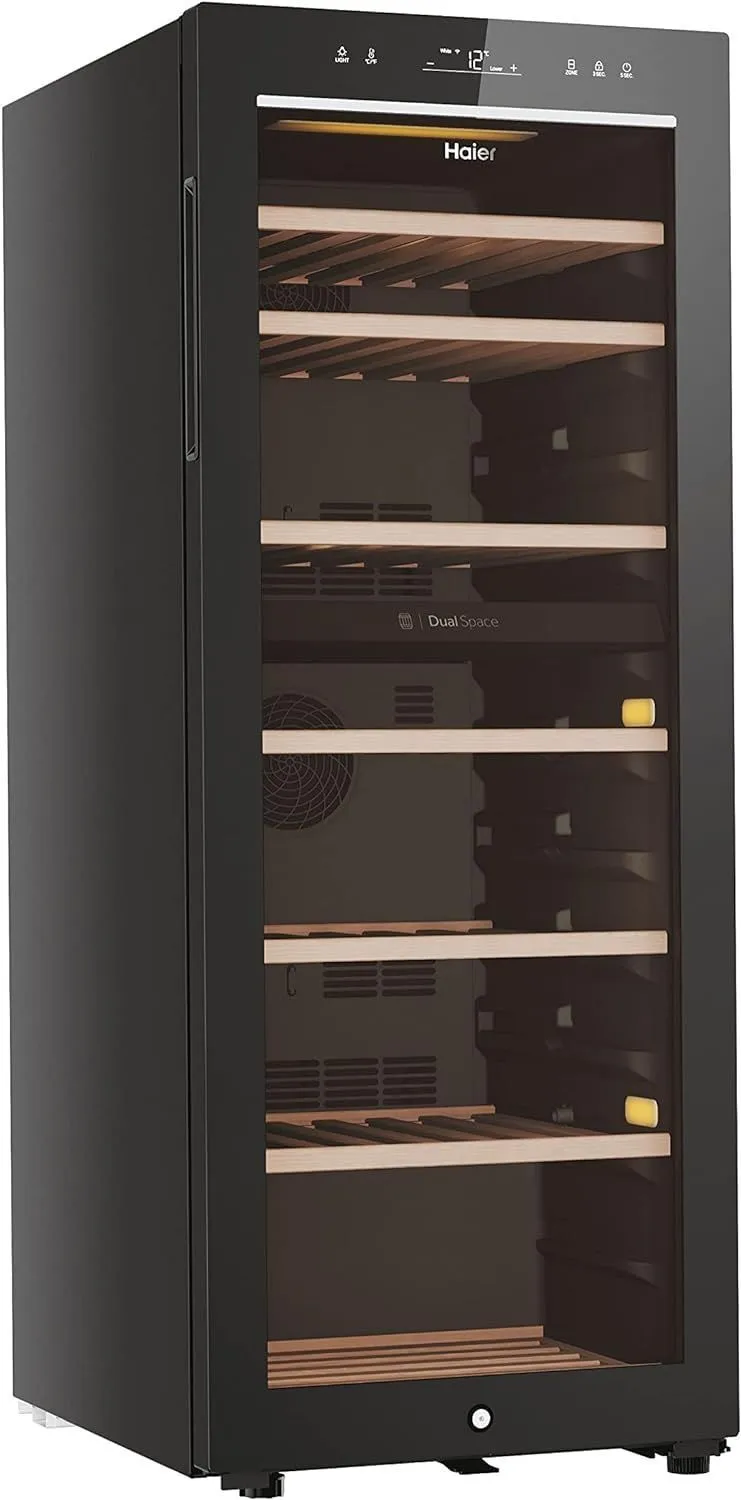 Холодильник Haier для вина, 127x49.7х58.5, мороз.відд.-190л, зон - 2, бут-77, ST, дисплей, чорний