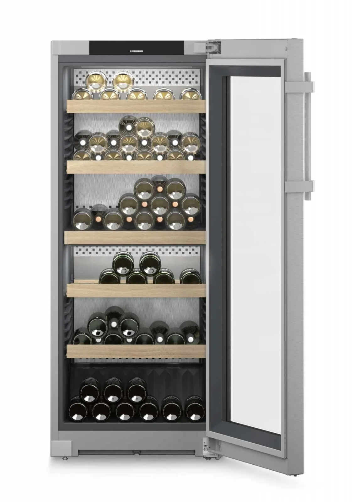 Кліматична винна шафа Liebherr WPSD4652 з двома незалежними температурними зонами забезпечує ідеальні умови для зберігання вина. Оснащена системами TempProtect Plus, UVProtect Plus, HumiditySelect і фільтром FreshAir для збереження якості напоїв. Підтримує дистанційне керування через SmartDeviceBox, має сенсорний дисплей, дерев’яні полиці, індикатори зміни температури та функції безпеки: батьківський контроль, блокування дисплея й автоматичне зачинення дверцят. Ідеальний вибір для колекціонерів і поціновувачів вина.