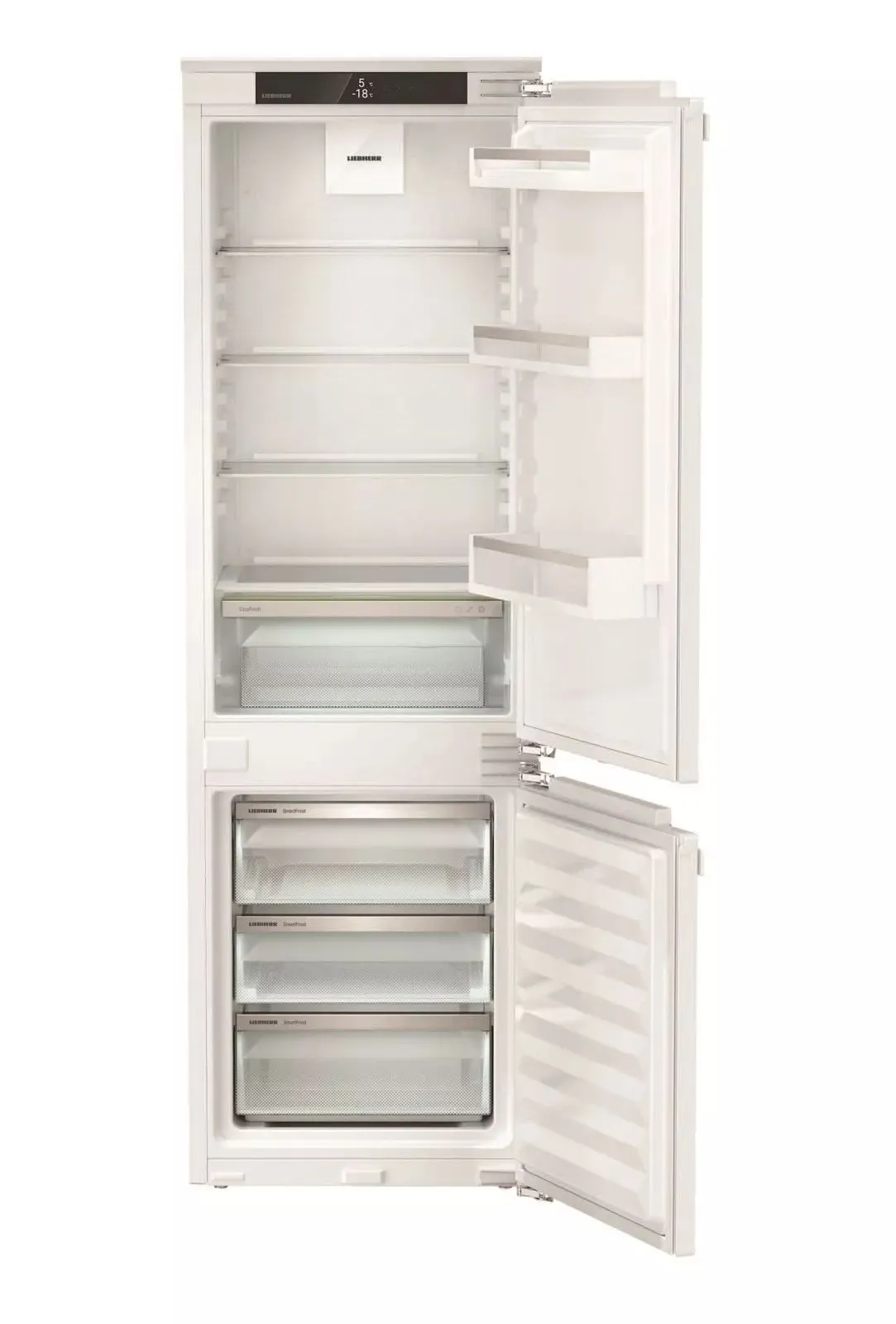 Завдяки двом повністю роздільним контурам охолодження DuoCooling забезпечує відсутність повітрообміну між холодильним та морозильним відділеннями. Продукти харчування не засихають, а запах не передається. А це означає: менше викидати, рідше ходити за покупками, більше заощаджувати та отримувати задоволення. Реальність дотику: сенсорний екран дозволяє легко та інтуїтивно керувати пристроєм Liebherr. Світлодіодне стельове освітлення освітлює внутрішній простір зверху для гарного огляду продуктів. Бажаєте заморозити свіжі продукти з дбайливим збереженням вітамінів? Просто активуйте SuperFrost – і морозильне відділення збільшить холодопродуктивність.