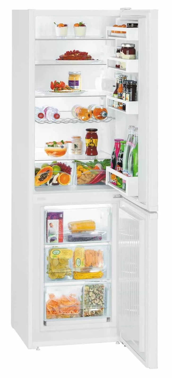 Liebherr CUE 3331 — це високий, місткий двокамерний холодильник з нижньою морозильною камерою, який поєднує в собі зручність, енергоефективність і надійність. Завдяки системі SmartFrost у морозильному відділенні зменшується утворення льоду, що дозволяє рідше розморожувати камеру. Загальний об’єм становить 296 літрів, з яких 212 л займає холодильне відділення, а 84 л — морозильне. Висота 176,1 см дозволяє вмістити більше продуктів, не займаючи надто багато місця на кухні.