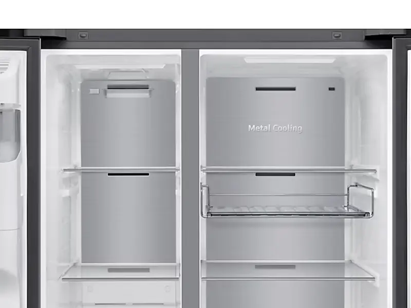 Підтримуйте оптимальну температуру всередині холодильника, щоб продукти залишилися свіжими, навіть якщо ви часто відкриваєте та закриваєте дверцята. Металева панель Metal Cooling у задній стінці утримує холод з повітря і допомагає швидко відновити будь-які втрати тепла.