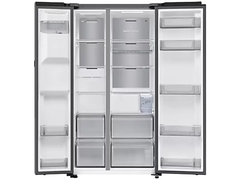 Гарантує, що вся ваша їжа належним чином охолоджена. Система всебічного охолодження ріномірно охолоджує кожне відділення від кута до кута. Вона постійно перевіряє температуру та забезпечує циркуляцію холодного повітря через оптимально розташовані вентиляційні відверстия.