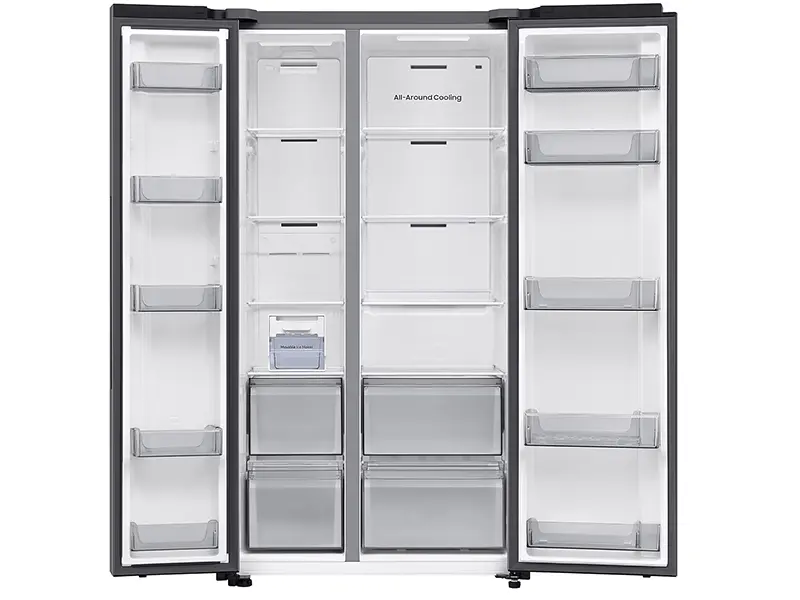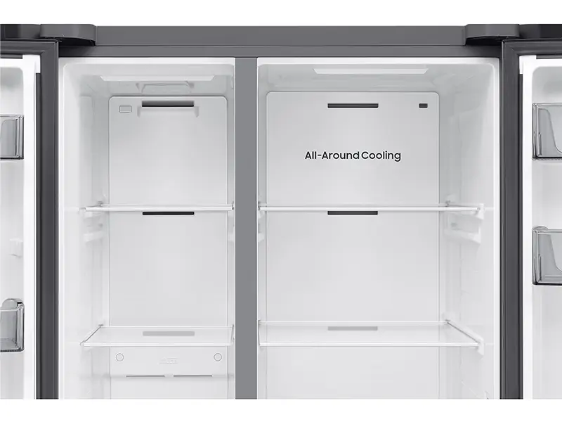 Гарантує, що вся ваша їжа належним чином охолоджена. Система всебічного охолодження ріномірно охолоджує кожне відділення від кута до кута. Вона постійно перевіряє температуру та забезпечує циркуляцію холодного повітря через оптимально розташовані вентиляційні отвори.