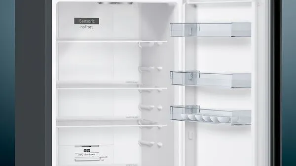 Холодильник Siemens з нижньої мороз. камерою шириною 60 см з технологією NoFrost. Роздільне електронне регулювання температури в холодильній і морозильній камераx. Дисплей на дверях. Vario Zone - оптимізація внутрішнього простору морозильної камери завдяки скляним поличках, що легко виймаються. Функція швидкого заморожування superFreezing з автоматичним відключенням.